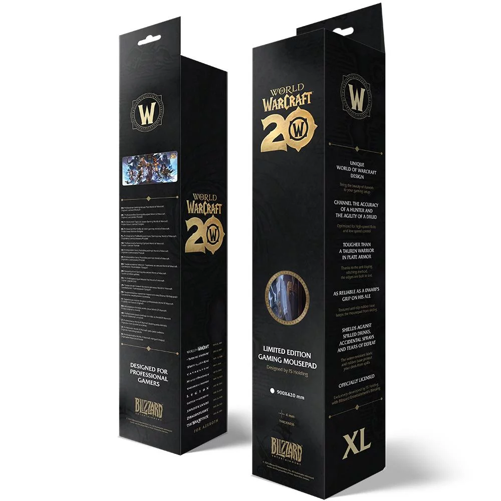 Stylová herní podložka pod myš oslavující 20. výročí World of Warcraft. Přináší epickou koláž ikonických hrdinů a padouchů z celého Azerothu, ideální pro každého fanouška této legendární hry.