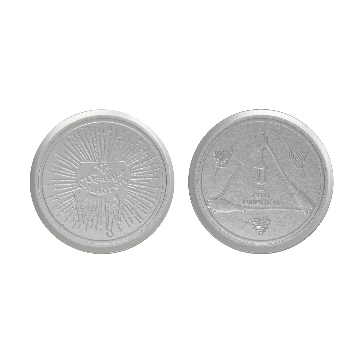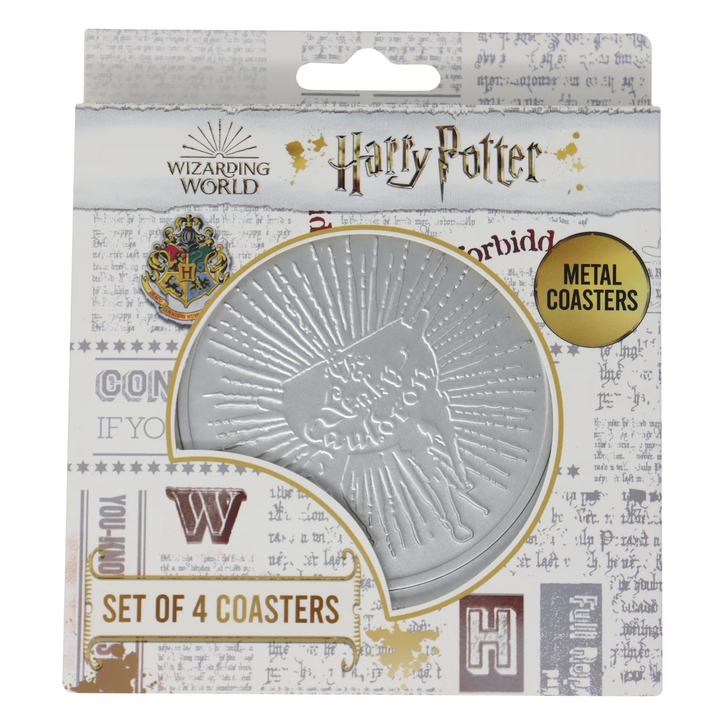 Set podtácků v kovovém provedení, který stylově ozdobí každý stůl. Najdete v něm čtyři kusy se dvěma výraznými embosovanými motivy, inspirovanými světem Harryho Pottera.