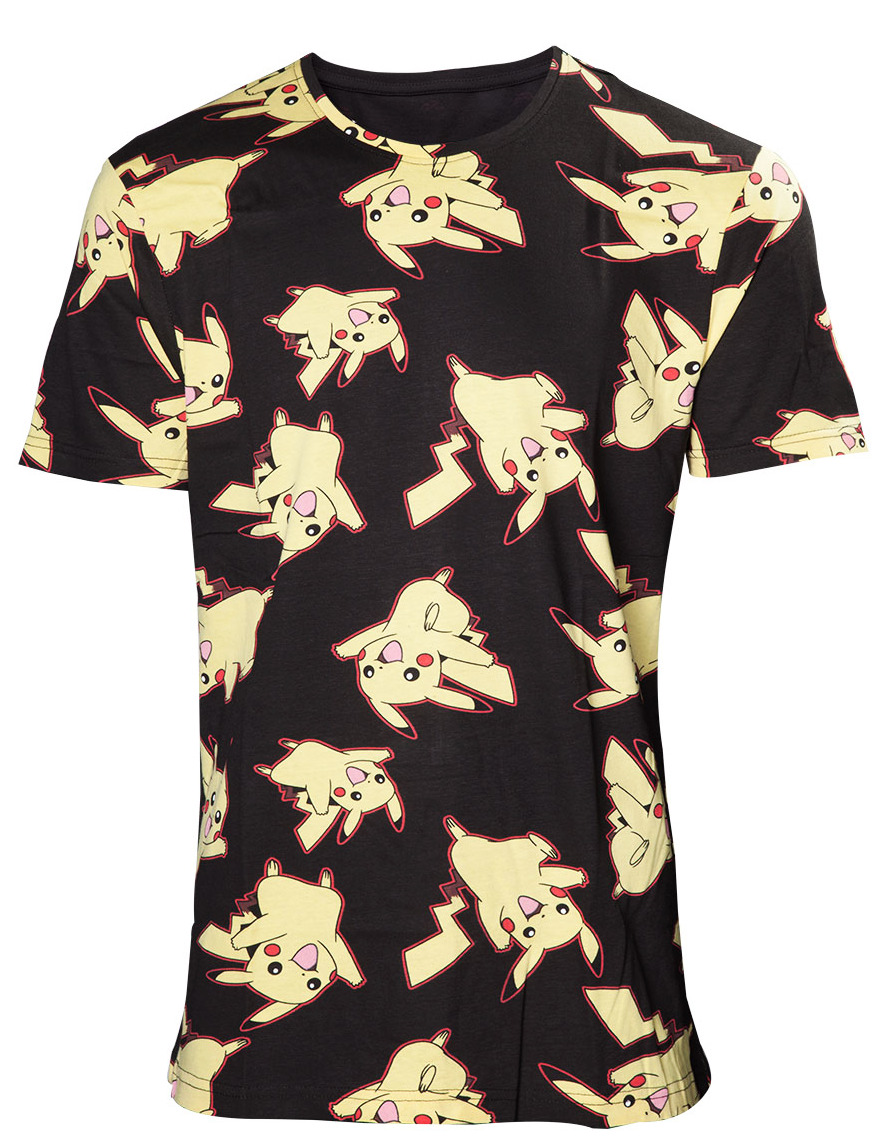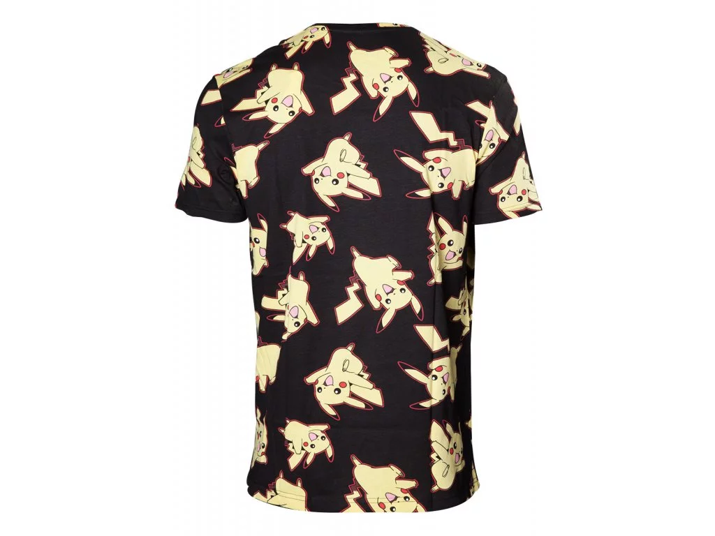 Krásné černé bavlněné tričko pro všechny lovce pokémonů. Tričko zdobí parádní celopotisk s motivem toho nejznámějšího pokémona - samotného Pikachu!