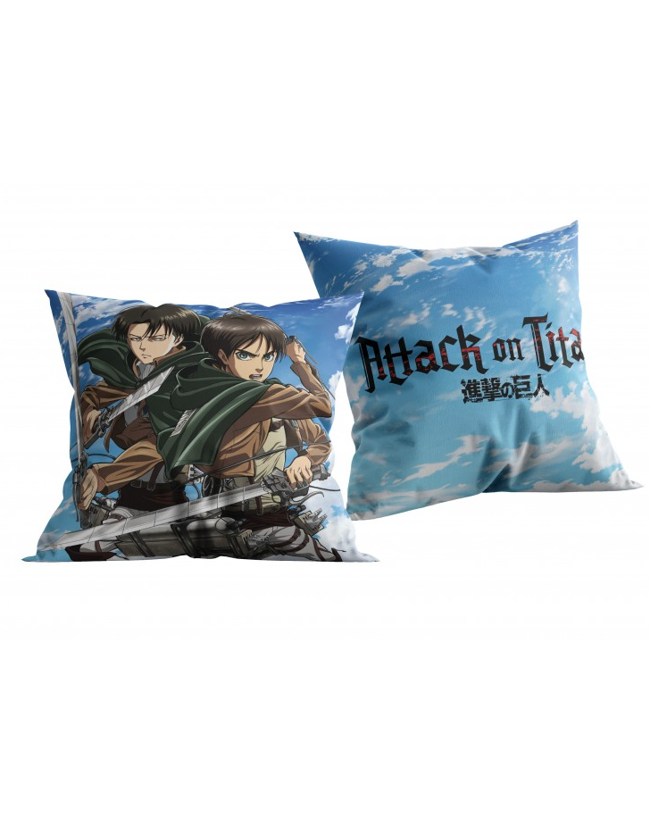 Polštář pro milovnice a milovníky japonské mangy a anime Attack on Titan s motivem postav Eren a Levi.