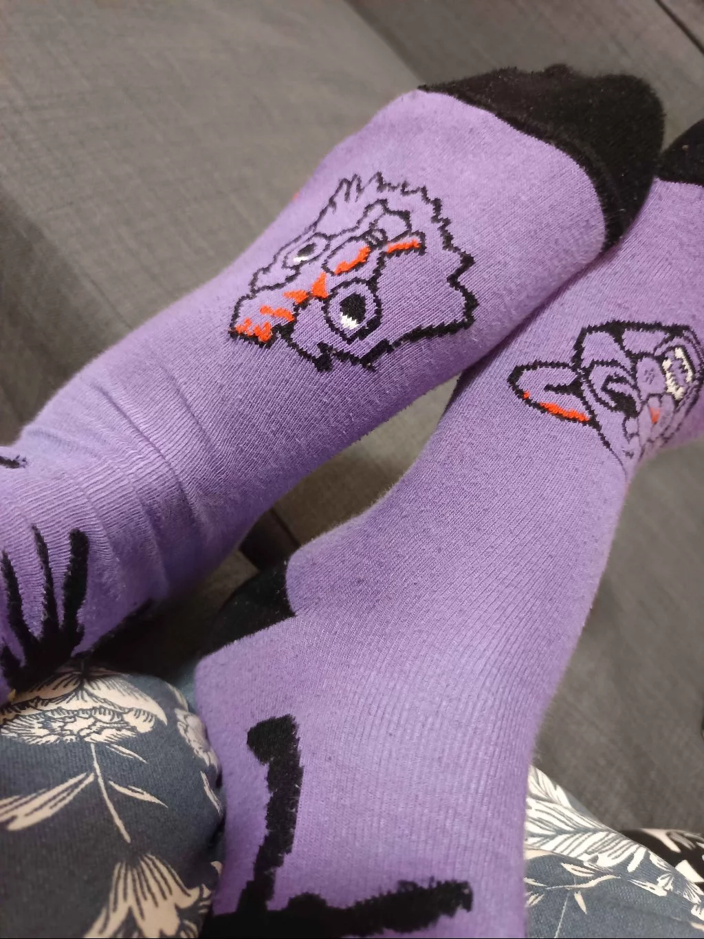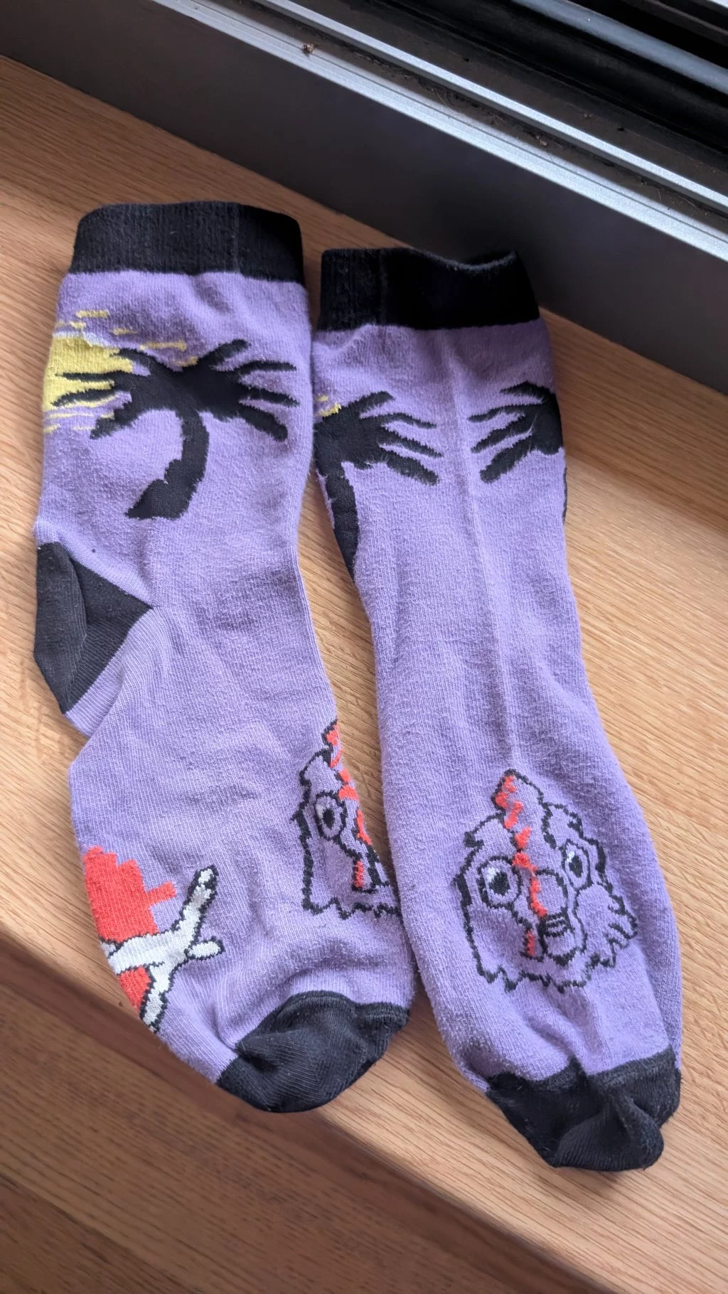 Prakticky povinnost pro všechny fanoušky Hotline miami vzhledem k množství merche k němu dostanému. Plus jsou ponožky opravdu kvalitní, máme je dlouho a vydržely už hodně nošení a praní bez ztráty barvy nebo tvorby dírek.
