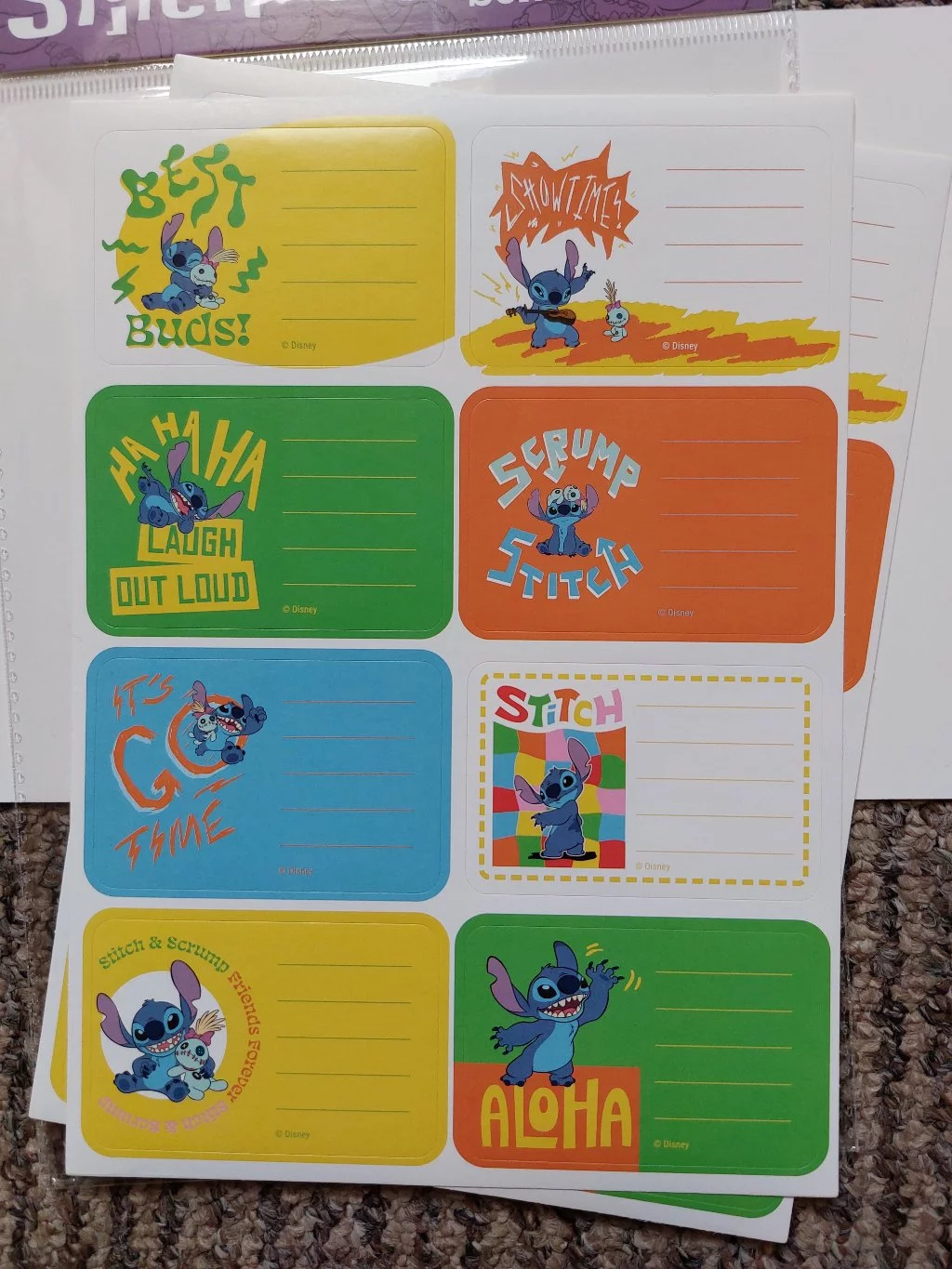 Tyto samolepicí štítky na sešity, diáře nebo knihy s motivy Stitche od studia Disney jsou krásnou ozdobou se sytými, zařícími barvami. Mají hladší povrch, takže při použití nějakého fixu či propisky, která má větší objem, může dojít k rozmazání.