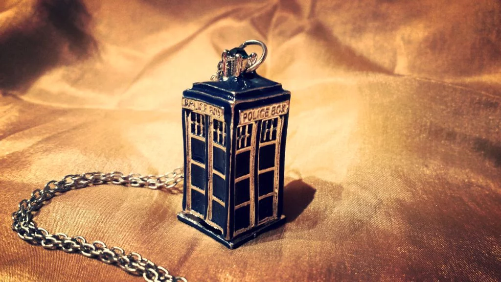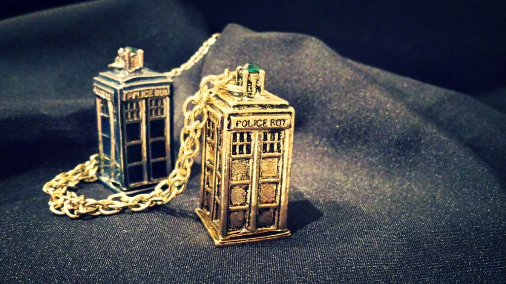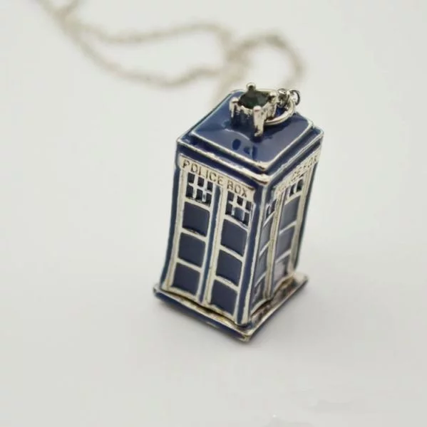 Přívěsek ve tvaru lodi Tardis (policejní budky) ze seriálu Doctor Who (Pán času). Rozměry asi 3 x 1,5 cm. Materiál: slitina zinku. Barva: modráObrázky :
