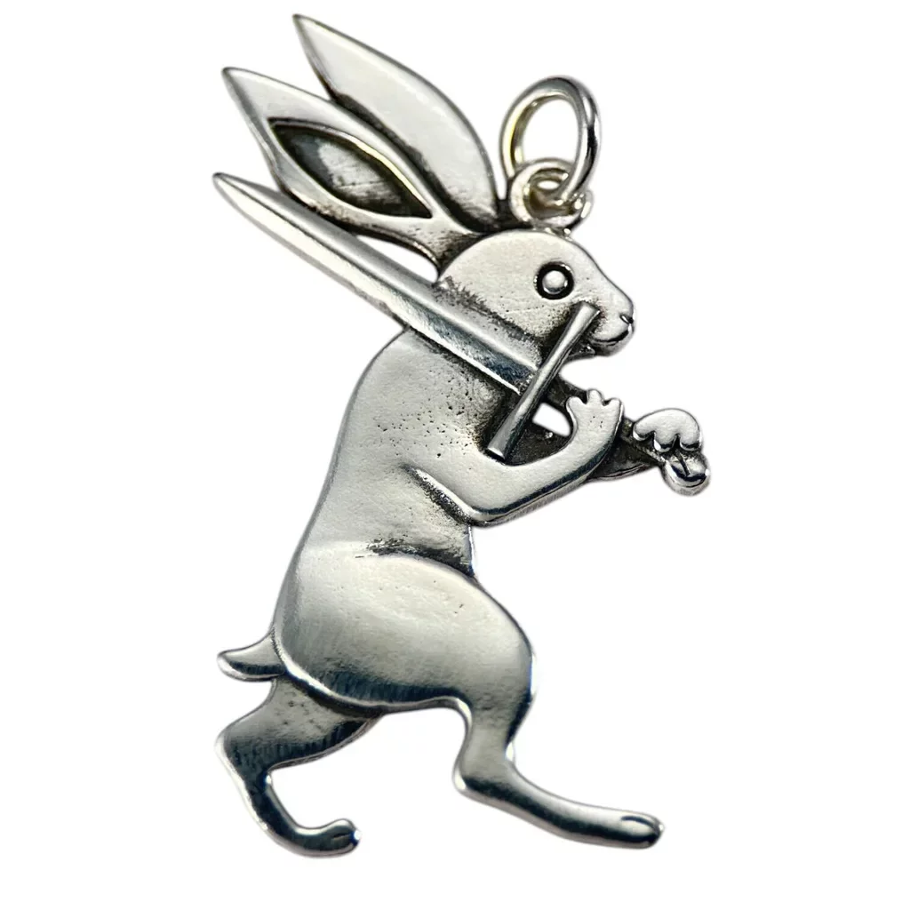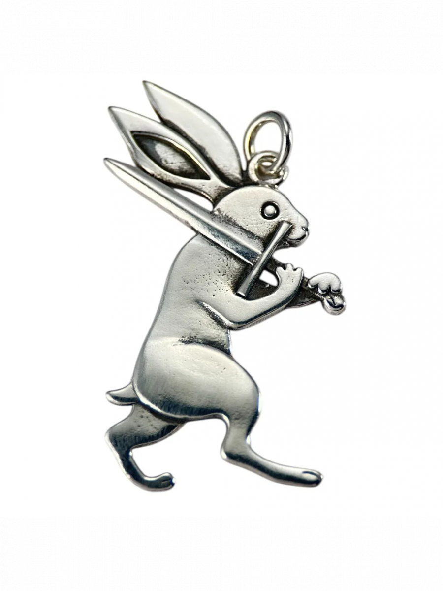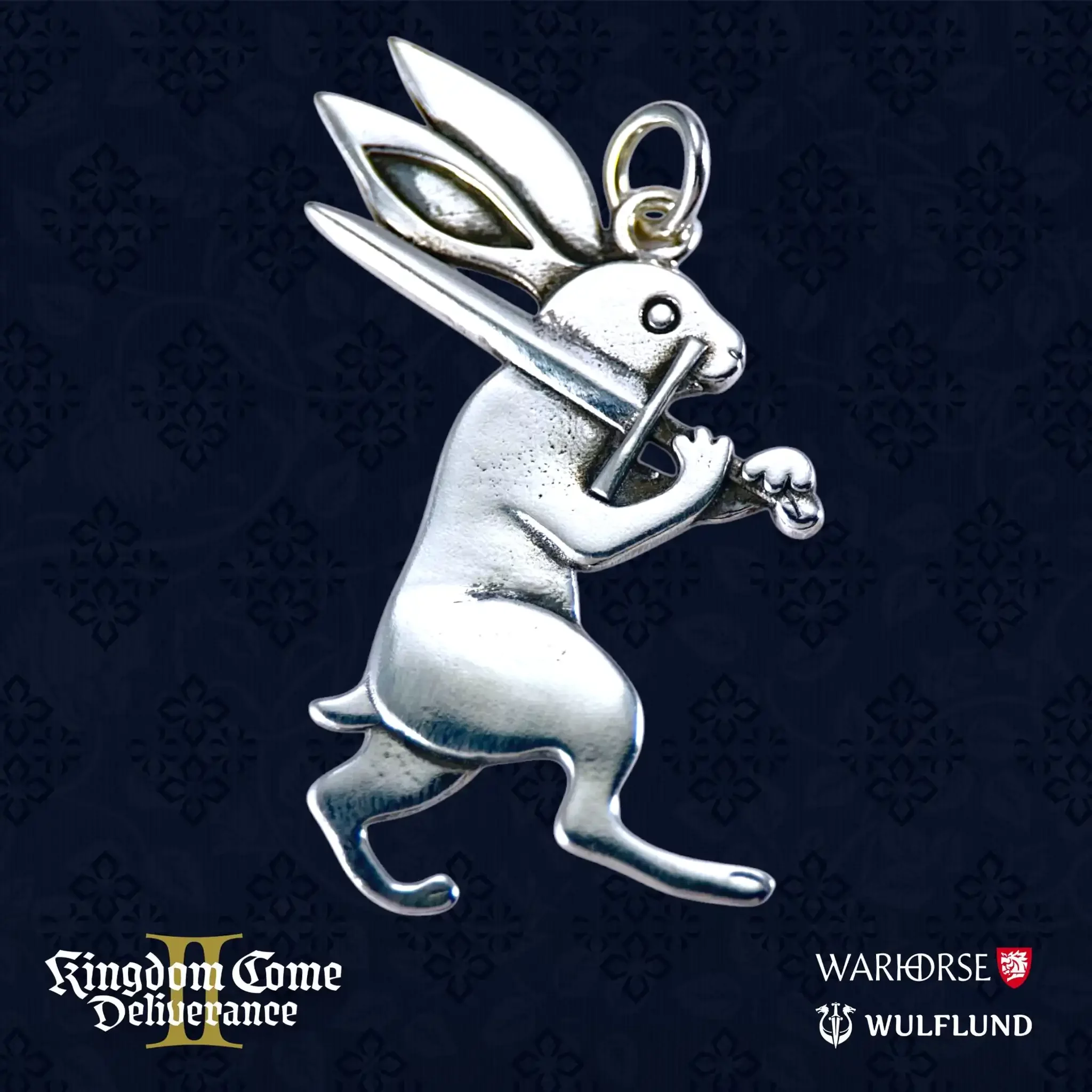 Stříbrný přívěsek Kingdom Come: Deliverance II – středověký zajíc. Je věnován fanouškům hry Kingdom Come: Deliverance II, středověké a české historie. Motivem je středověký zajíc s mečem.