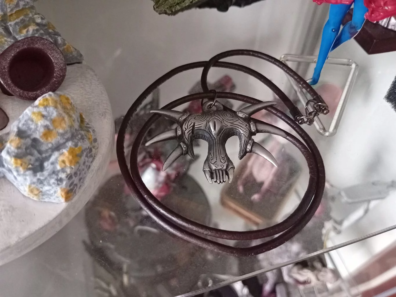 Materiál: cín se starostříbrnou patinou + kožená šňůrka 60 cmKategorie