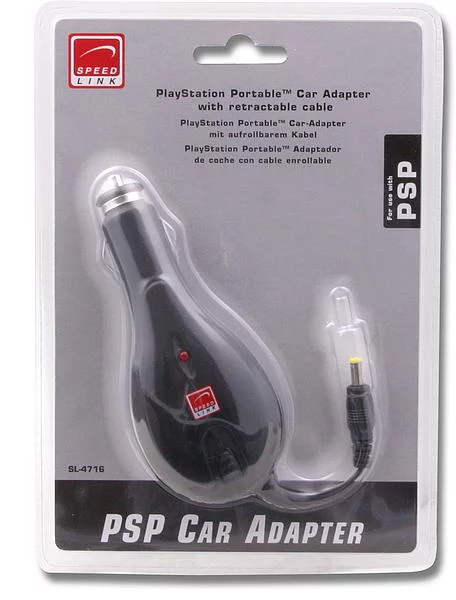 S adaptérem do auta můžete jednoduše nabíjet PSP kdekoliv vás vítr zavane. Kabel je vysouvací podle potřeby a při přenosu se dá jednoduše zatáhnout zpět do adaptéru.