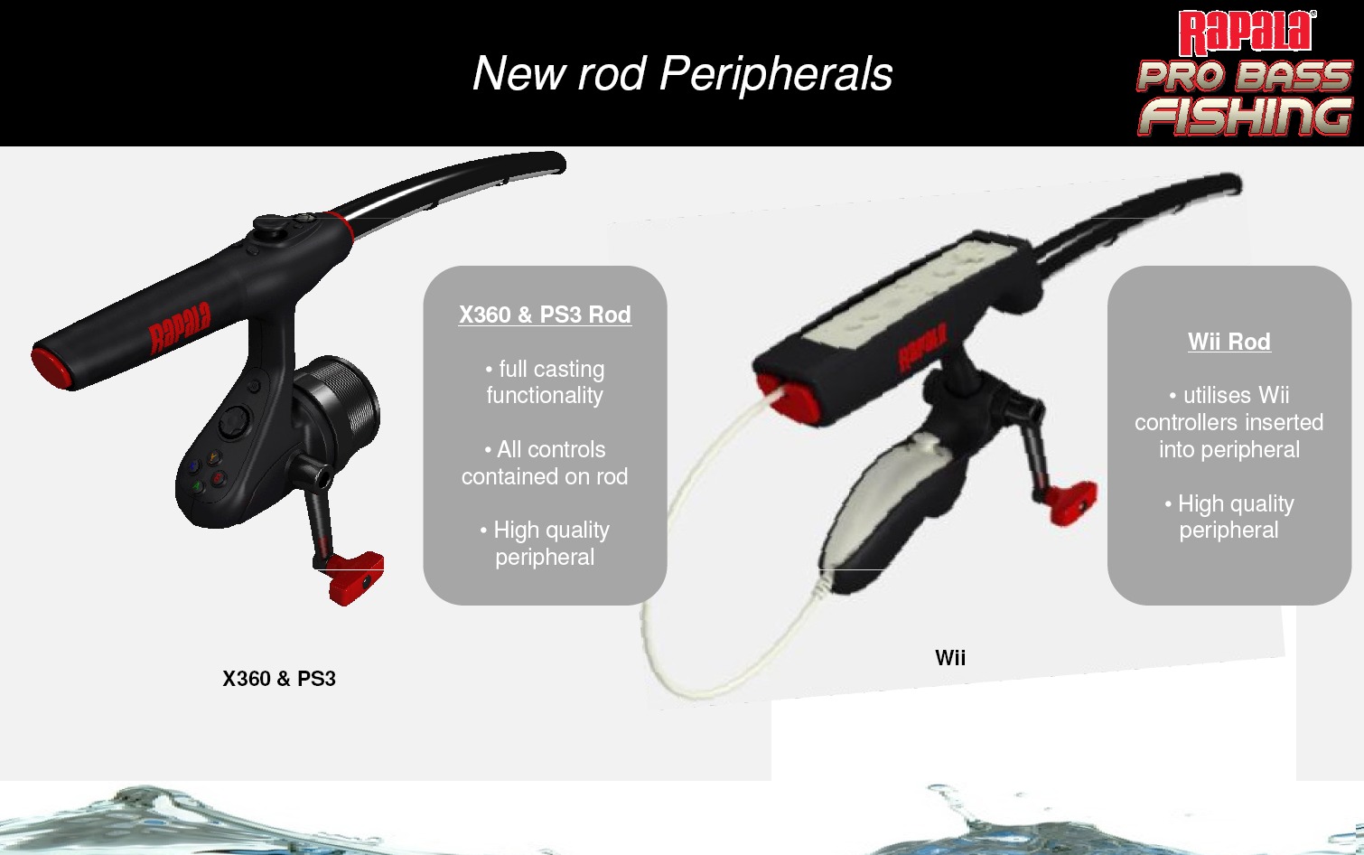 Rybaření u televizoru nebo počítačového monitoru asi není to, co posezení v poklidném říčním rameni, ale pokud zrovna nemáte tu možnost, nebo si chcete užít pro nás exotických míst a ryb... Hra Rapala Pro Bass Fishing má postavit hráče proti simulovaným rybám podle jejich reálného chování z jezer Severní Ameriky. Hráči si budou muset osvojit ty nejdokonalejší rybářské techniky, nejprve se budou učit a pak na ně čeká na dvacet turnamentů, přičemž hra bude prezentovaná jako Live TV přenos. V Rapala Pro Bass Fishing jsou licencované lodě, pruty a veškeré vybavení pro rybaření. Hráči si mohou jen tak lovit pro sebe, nebo i vyzývat kamarády. Hra je nejrealističtější rybařením, které zatím existuje, tvrdí vydavatel hry.Balení hry obsahuje ke hře i napodobeninu prutu, s kterým budete hru ovládat. Zde obrázek.