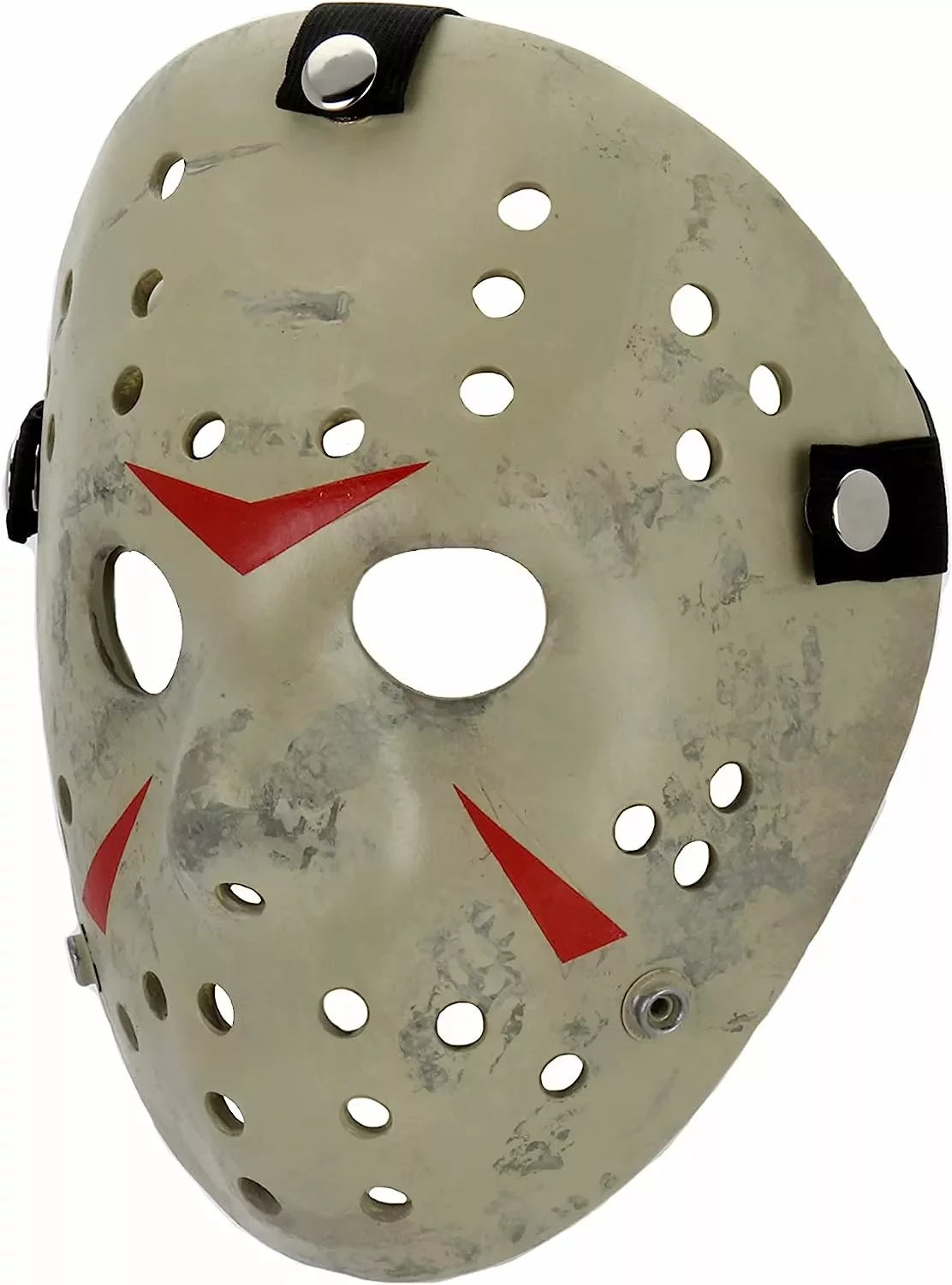 Replika legendární hokejové masky Jasona Voorheese, ve které se objevil ve 3. díle kultovní slasher série Friday the 13th. Maska je vyrobena s resinu přesně podle filmové předlohy, včetně obnošeného vzhledu. Povinnost pro každého hororového nadšence.Materiál: resin
