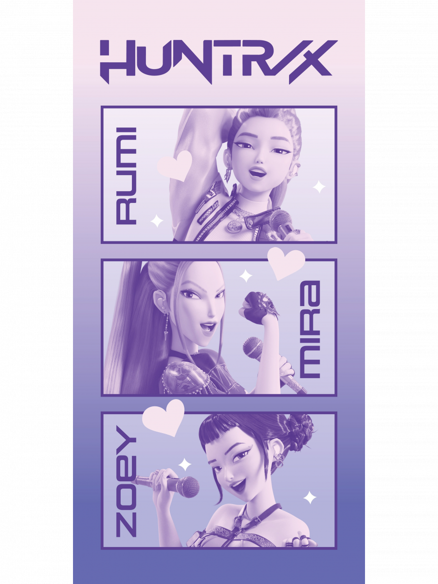 Vezměte si energii Huntrix s sebou k bazénu i na pláž. Ručník KPop Demon Hunters – Huntrix zdobí stylový fialový motiv s portréty Rumi, Miry a Zoey, který okamžitě přenese atmosféru koncertního pódia do každého letního dne.
