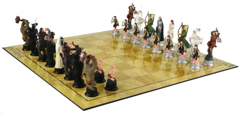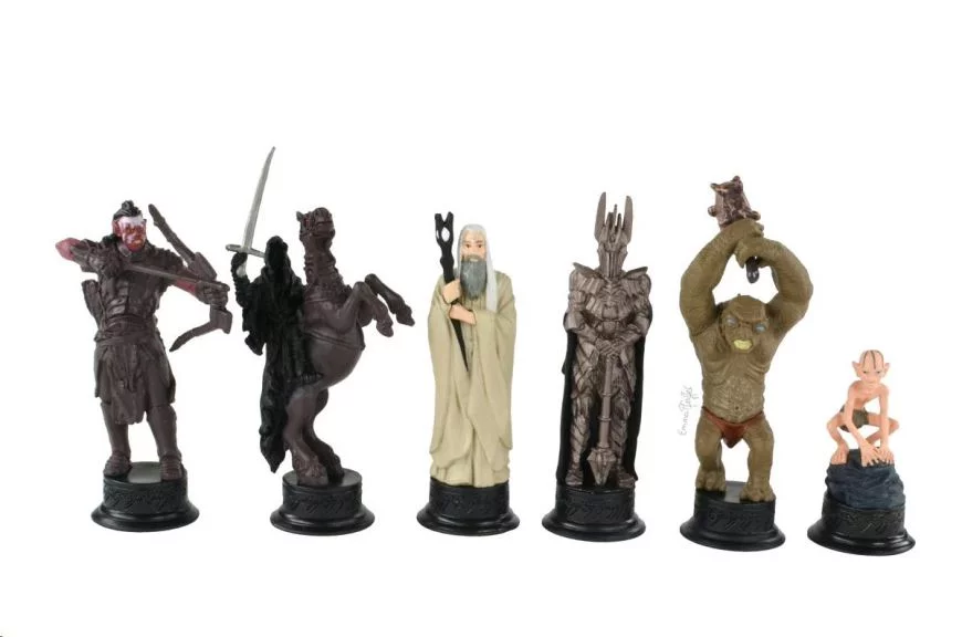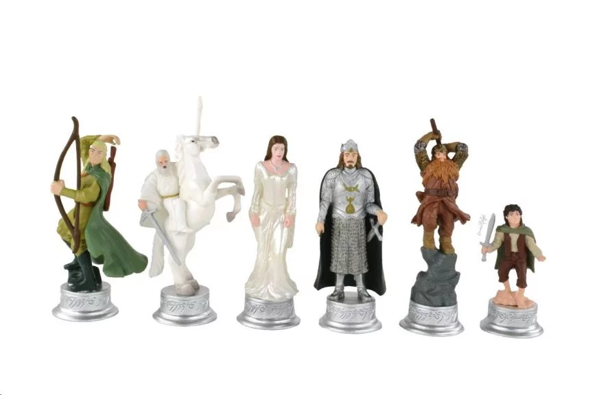 Šach s postavičkami z úspešné fantasy série Pán prstenů. Každá figurka je ručne malovaná (hra obsahuje celkově 32 postaviček).