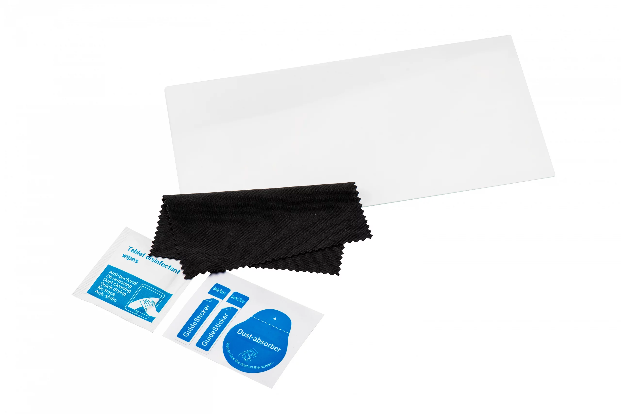 - Součástí balení je čisticí hadřík, dva dezinfekční vlhčené ubrousky, dvě lepítka pro odstranění prachu a nálepky usnadňující aplikaci skla.