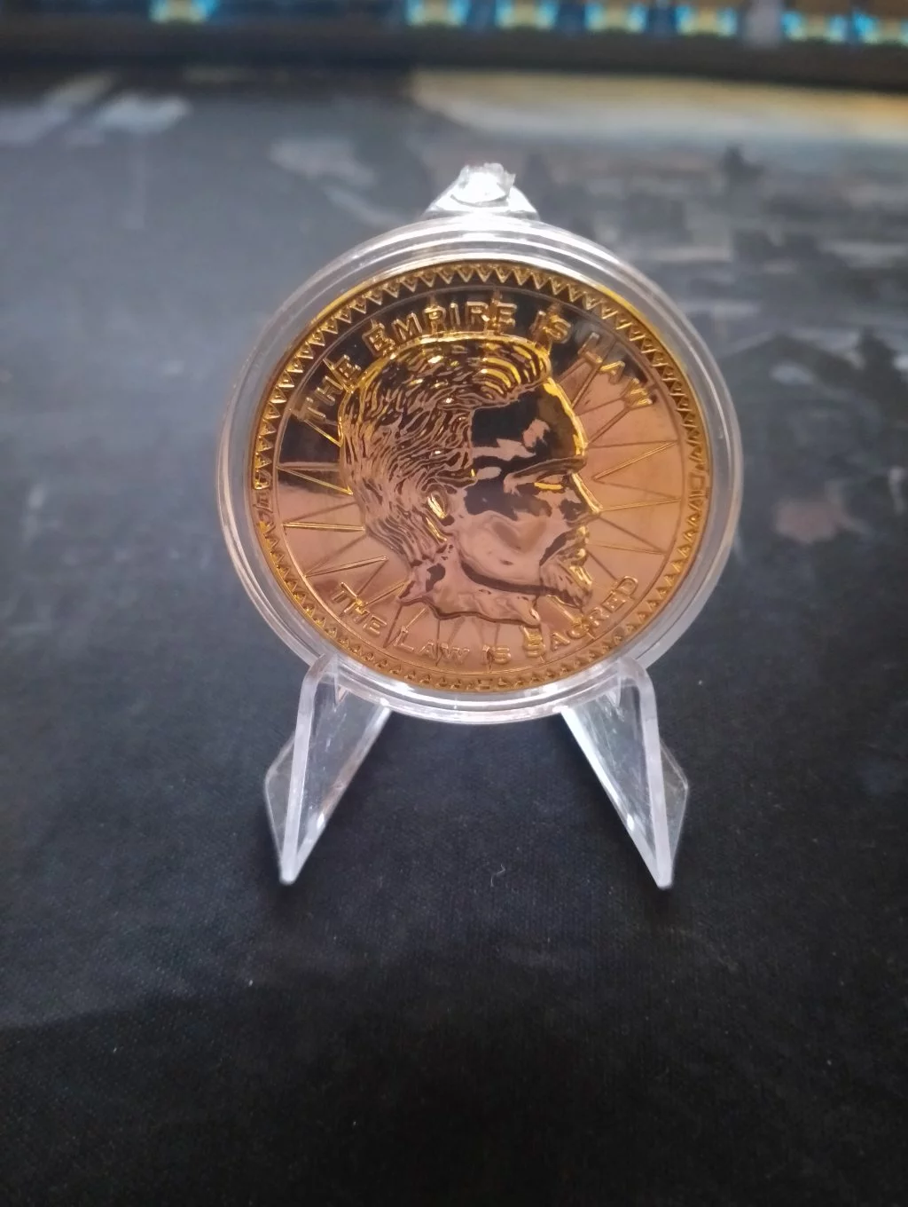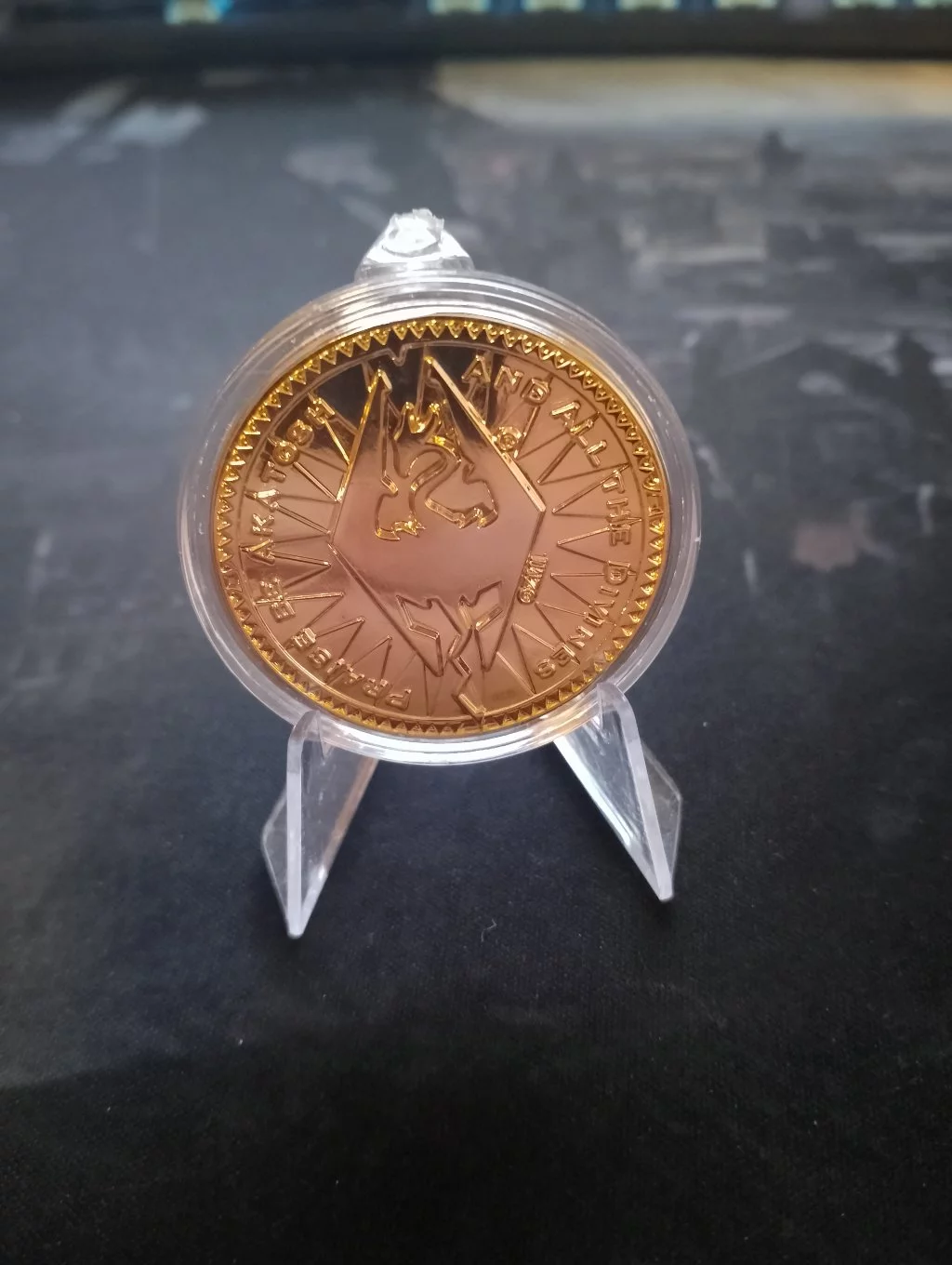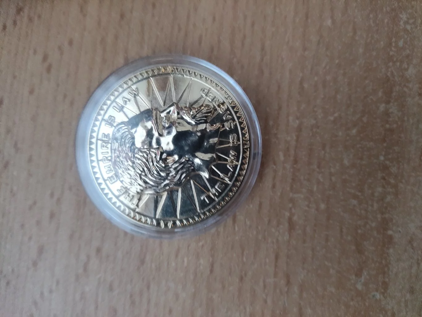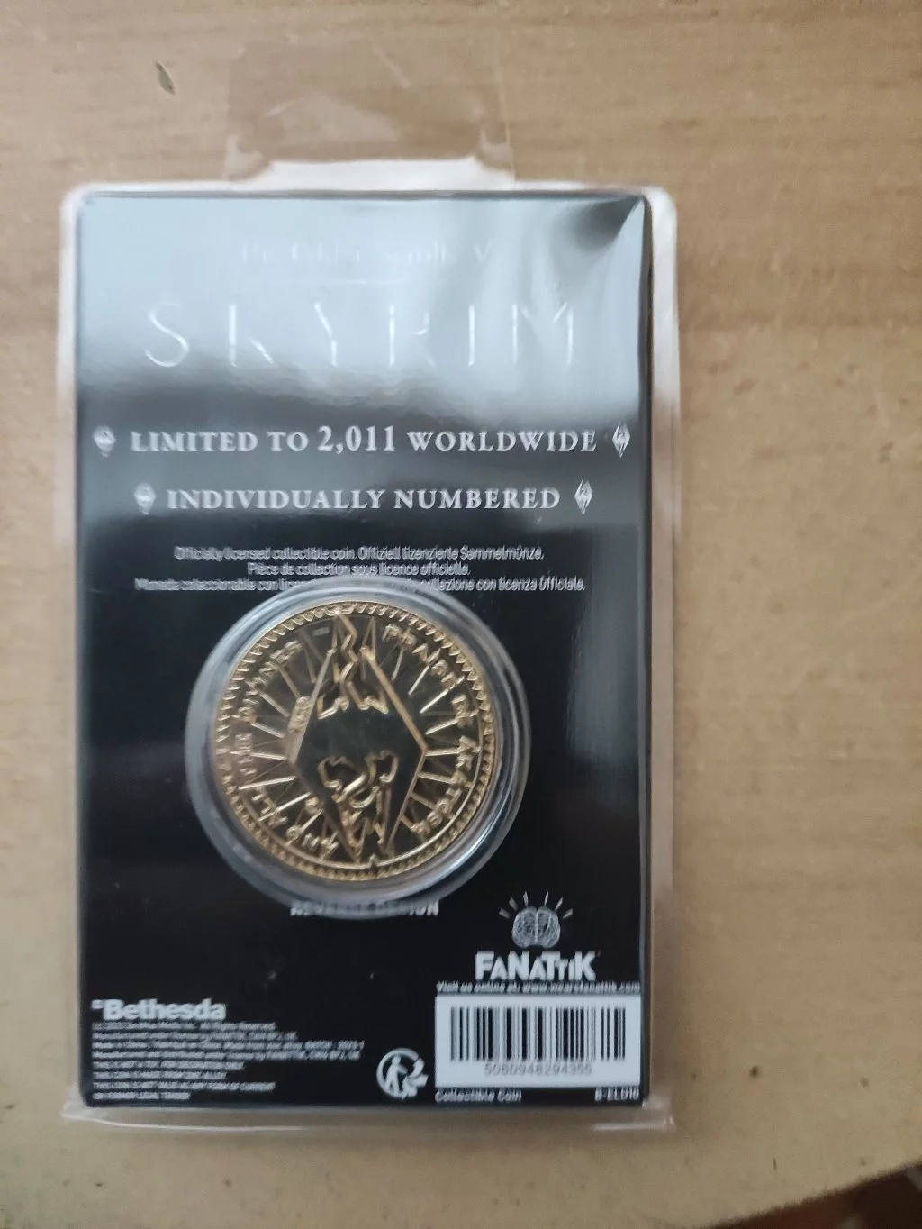 Říše je zákon, zákon je posvátný! Zaplaťte si v Tamrielu touto limitovanou edicí repliky septimové mince potažené 24karátovým zlatem. Tato mince o průměru 38 mm je celosvětově limitována na 2011 kusů (rok vydání hry) a každá z nich je individuálně číslována.Materiál: kov