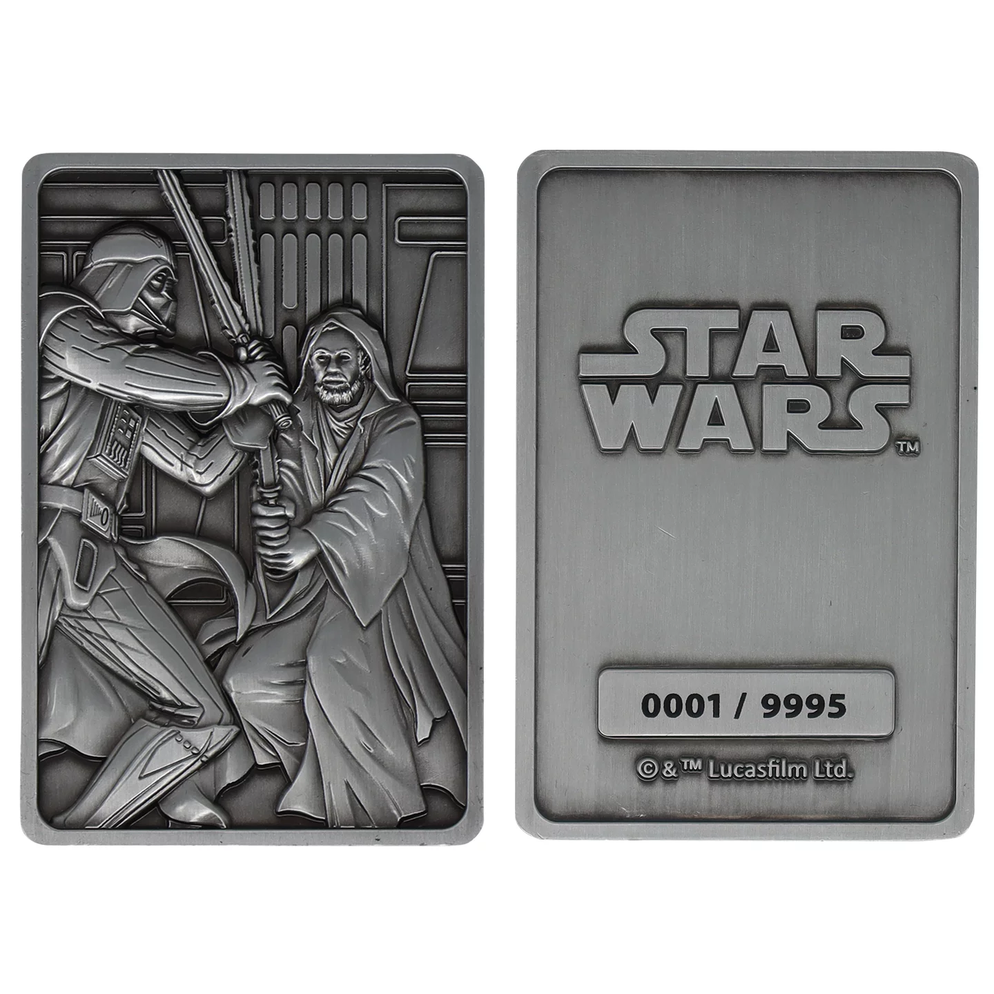 Tato sběratelská plaketka zachycuje ikonický souboj Darth Vadera s Obi Wanem a představuje elegantní kovový kousek pro každého fanouška ságy. Reliéfní zpracování dodává scéně působivou hloubku a díky sběratelskému stojánku si ji můžete vystavit hned po vybalení.