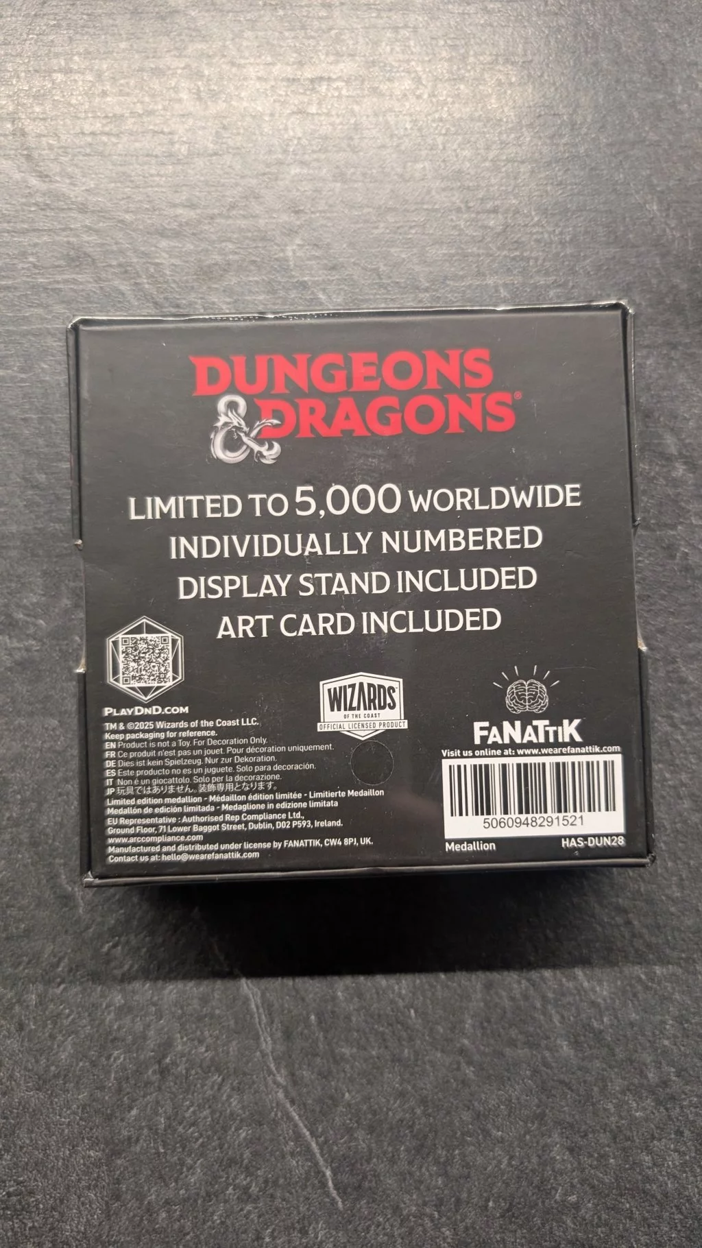 Talisman of Ultimate Evil ze hry Dungeons & Dragons je vydán v limitovaném nákladu 5 000 kusů. Každý sběratelský medailon je individuálně číslovaný a obsahuje stojánek pro vystavení. Kromě talismanu v balení najdete speciální Art kartu.