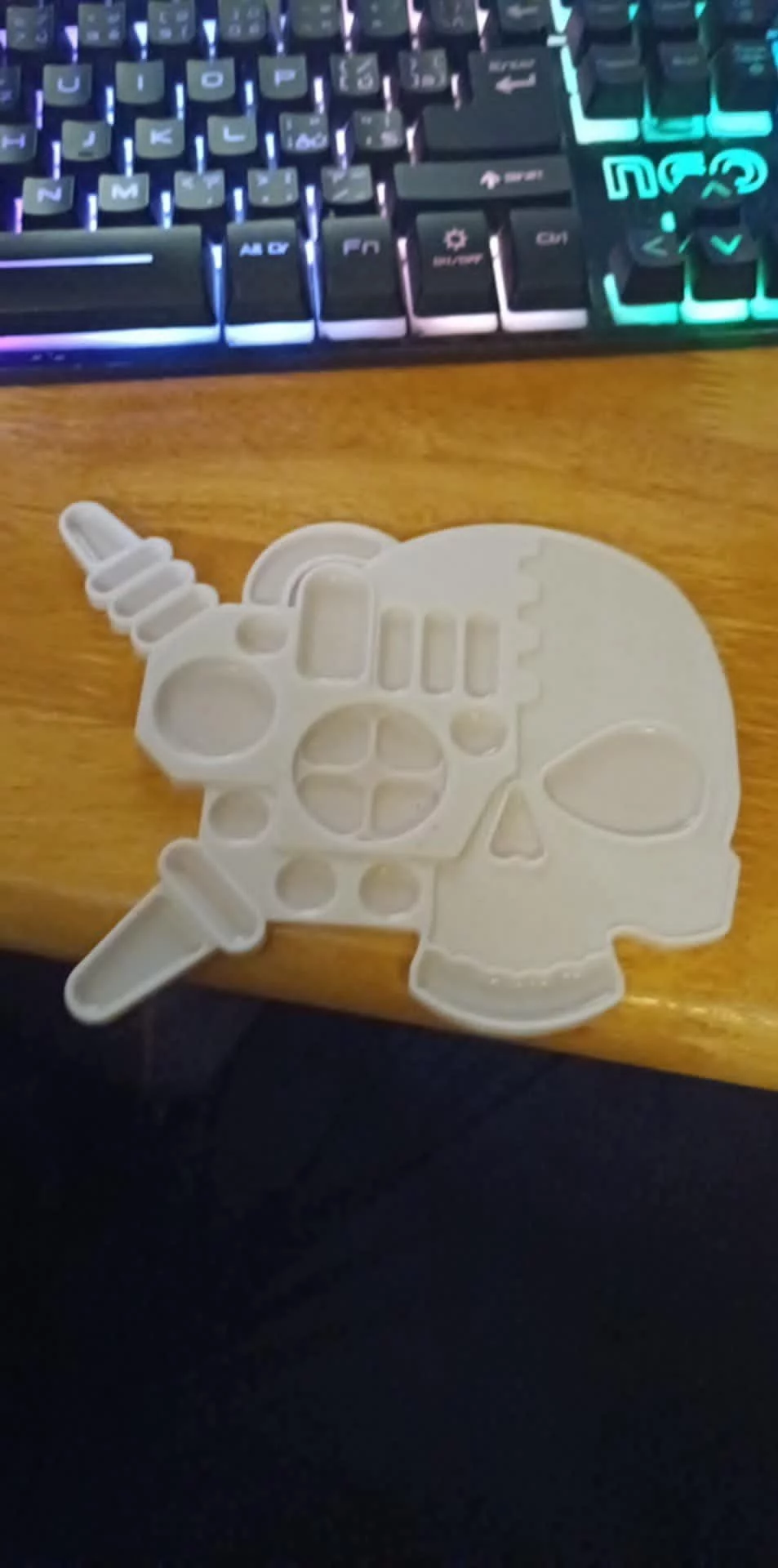 Paleta na malování inspirovaná Servo-Skull je vyrobena z měkkého omyvatelného silikonu, který je udržitelnou alternativou k jednorázovým paletám.