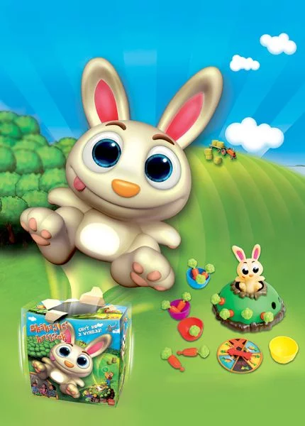 Z nory vykukuje „Skákající králíček“ a bedlivě sleduje své mrkvové políčko. Na hráčích je mu mrkev hezky „sklidit“, ale pozor, abyste jej nevylekali! Mějte proto oči na stopkách – jakmile vyskočí, musíte ho chytit!