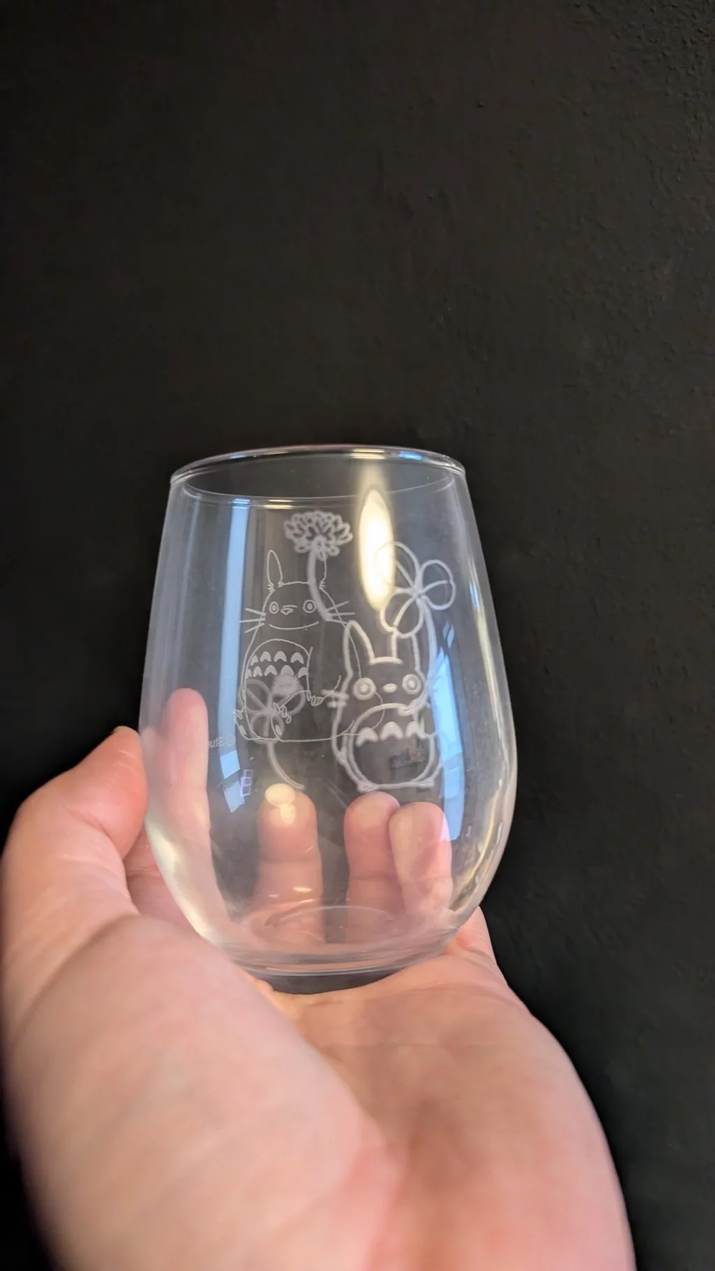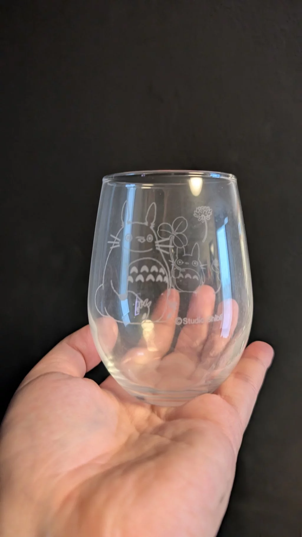 Broušená sklenička s motivem Totora udělá radost každému fanouškovi filmů Studia Ghibli.