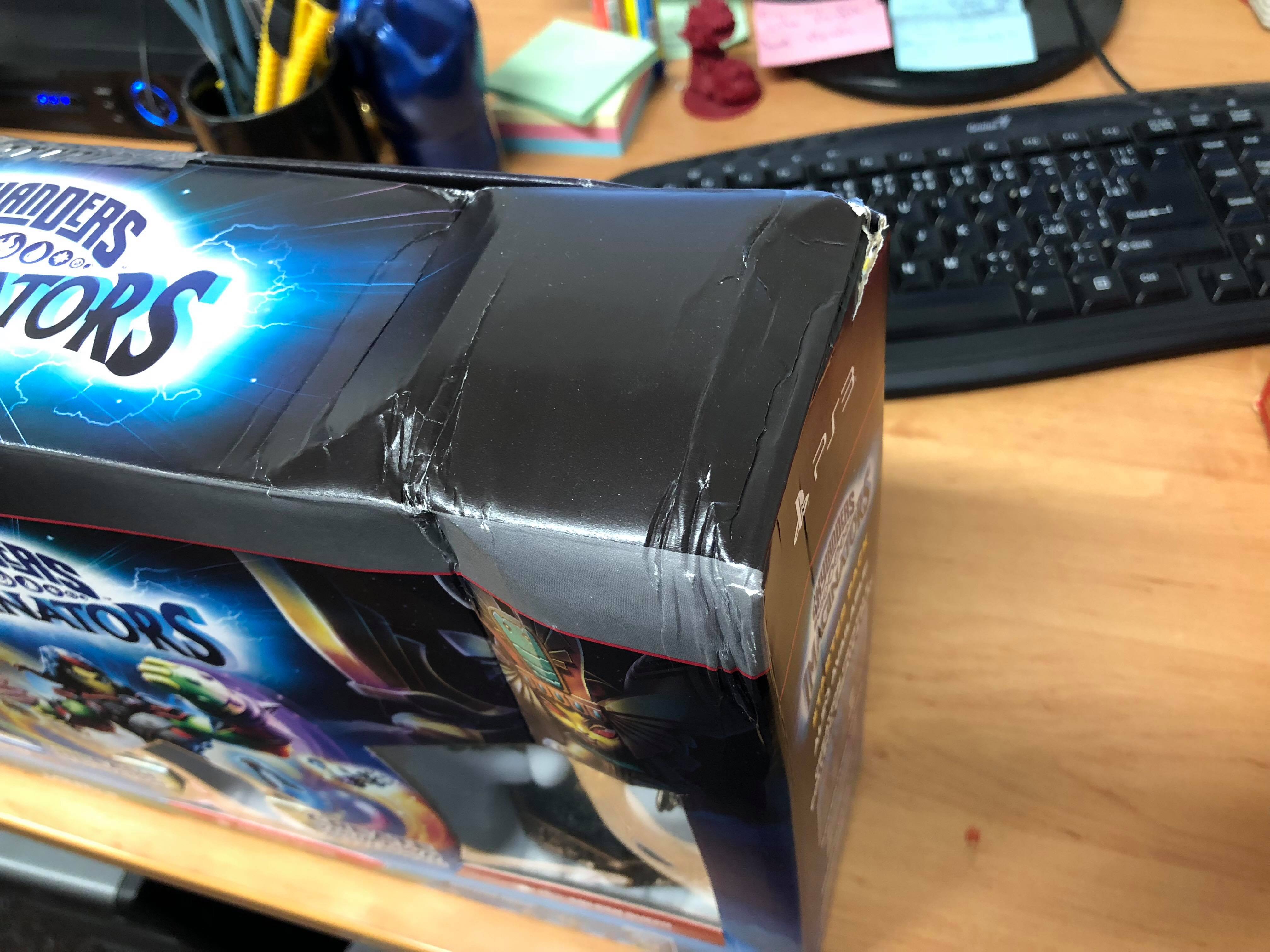 Krabice se hrou je lehce promáčknuta (foto). Obsah je ale naprosto v pořádku.