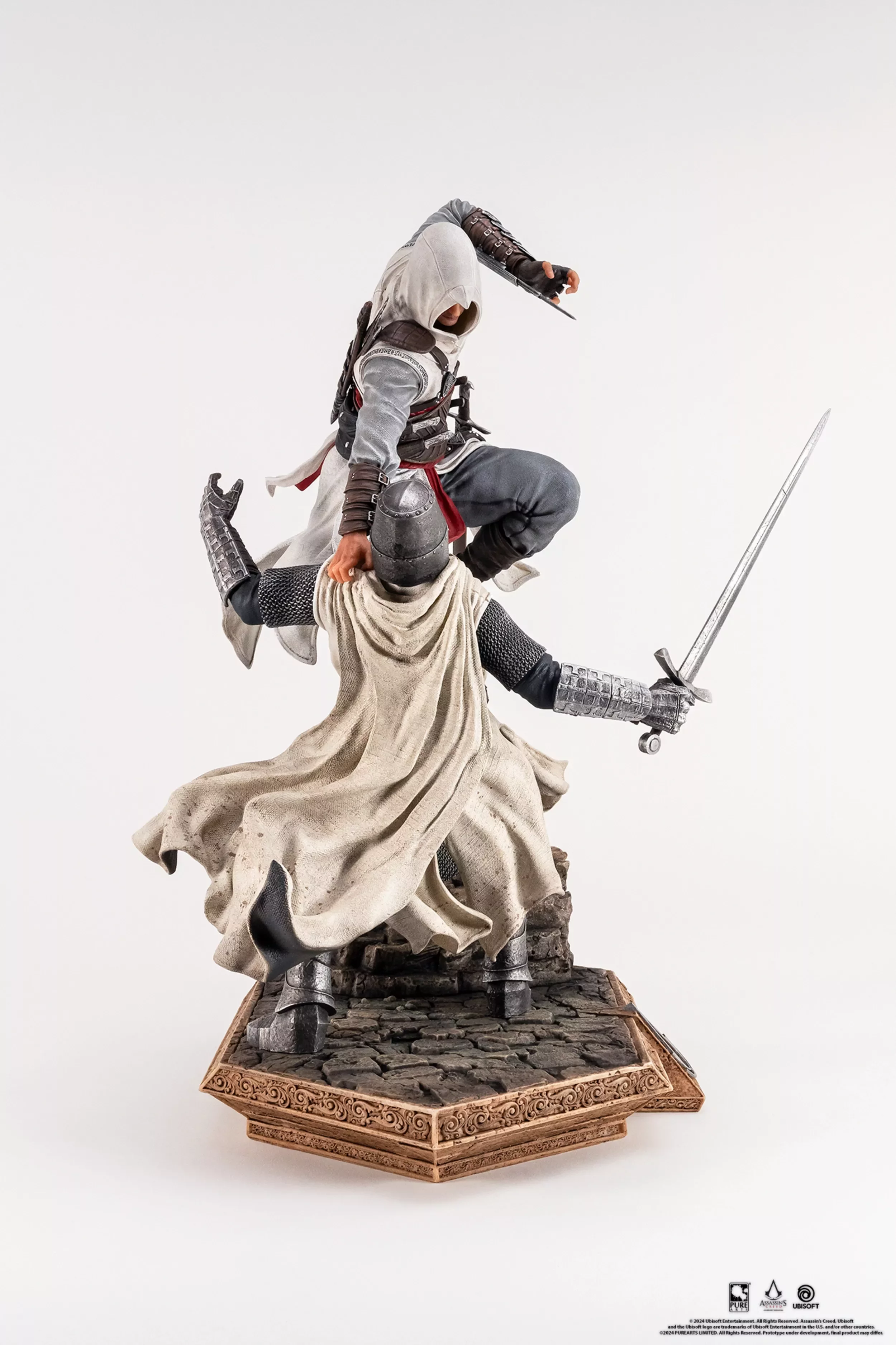 Socha nabízí dynamickou pózu a je vykreslena s detaily a precizností, jakou od sběratelských předmětů PureArts očekáváte. Altaïr se vznáší ve vzduchu a jeho koleno dopadá na hruď Roberta de Sablé chvíli před jeho smrtí.