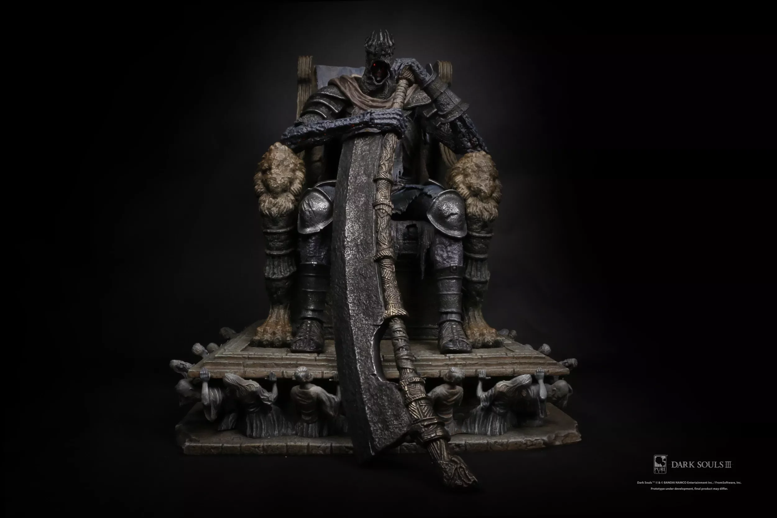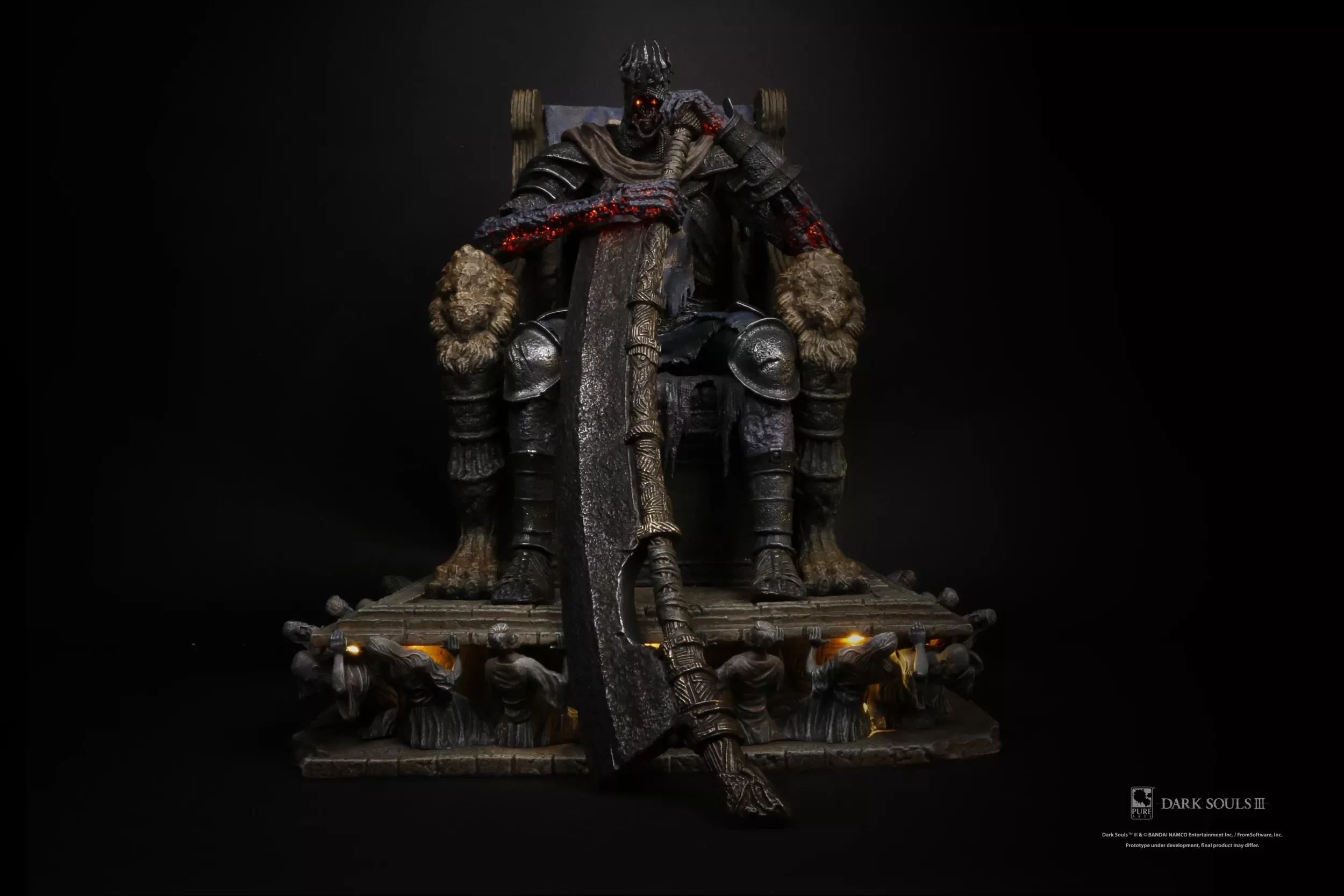 Krásná sběratelská socha od umělců z PureArts, která zaujme každého hráče Dark Souls. Tento kolosální boss, známý také jako Lord of Cinder, je rozpoznatelný díky své obrovské velikosti, těžké mačetě a rudě zářícím očím a kůži. Yhorma je vyobrazen v jeho nejikoničtější póze, kdy sedí na svém impozantním trůnu. Velkým plusem této verze navíc je, že oči, části Yhormovy kůže a podstavec mohou svítit a zářit díky LED prvkům, která tomuto mistrovskému dílu dodávají zcela nový rozměr.