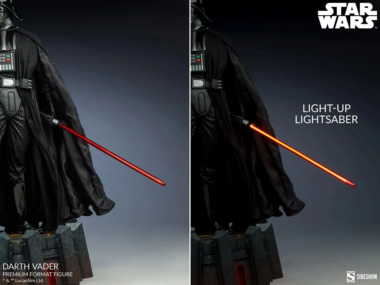 Jedinečně zpracovaná socha s podobou samotného Darth Vadera od umělců ze Sideshow! Socha nabízí obdivuhodné množství detailů - základ z polystonu doplňují látkové elementy a socha se může pyšnit také světelnými efekty (lightsaber, elektronika na obleku). Socha se pak vyjímá na podstavci, který je vymodelován do podoby Vaderovy pevnosti na planetě Mustafar. Součástí balení jsou také vyměnitelné ruce, které umožňují sochu vystavit v různých pózách.