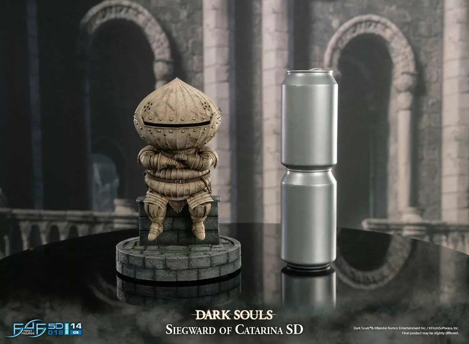 Siegward je veselý a čestný rytíř z Catariny, který může hráčům pomoci porazit jednoho z pánů Cinderu, obra Yhorma. Pro tuto sošku je Siegward skvěle ztvárněn v pryskyřici s těmi nejjemnějšími detaily. Další detaily, jako je špína, škrábance a promáčkliny, dodávají této soše opotřebovaný dojem odpovídající lore hry Dark Souls. Podstavec je inspirovaný Osadou nemrtvých. Rozhodně nepostradatelný kousek pro každého sběratele a fanouška Dark Souls.