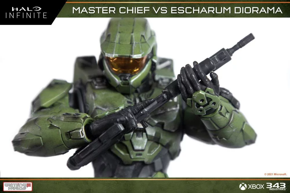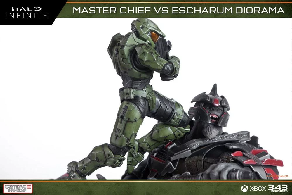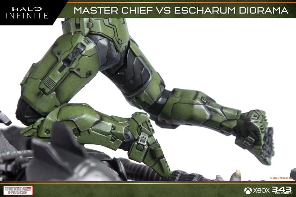 Společnost Gaming Heads představuje krásné limitované diorama v podobě sousoší Master Chief vs Escharum ze hry Halo: Infinite! Hrdina John-117 (Master Chief) se utkává v epické bitvě s vůdcem Banished na Zeta Halo! Ruční malování, precizní detaily a velký rozměr jsou velkou předností této sochy! Figurka je celosvětově limitována na 1500 ks!