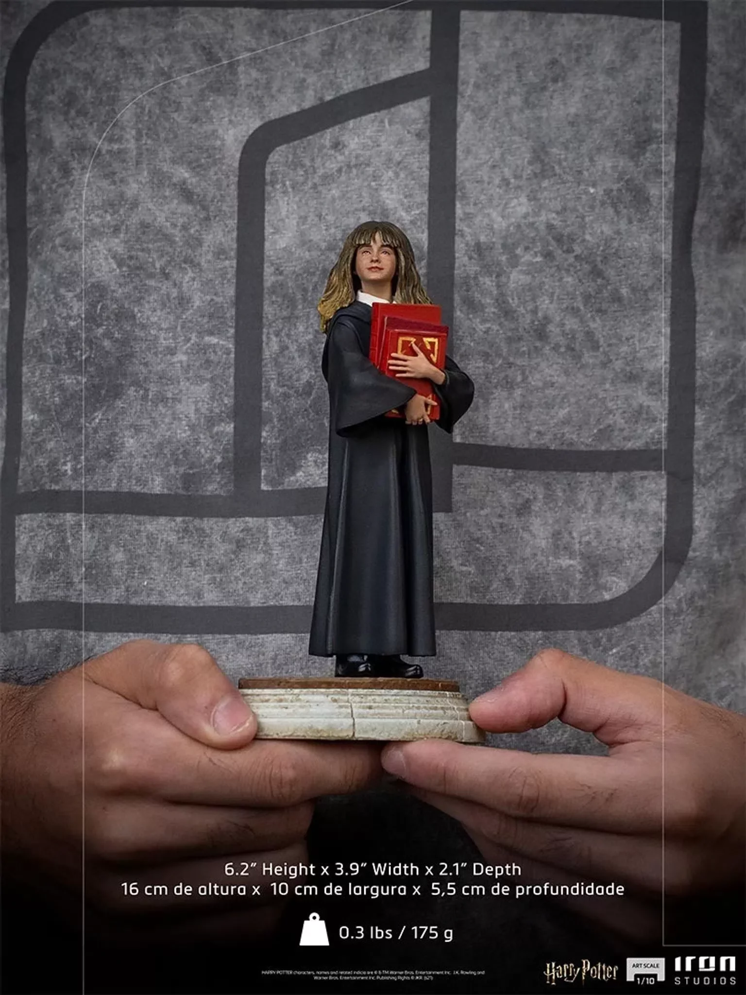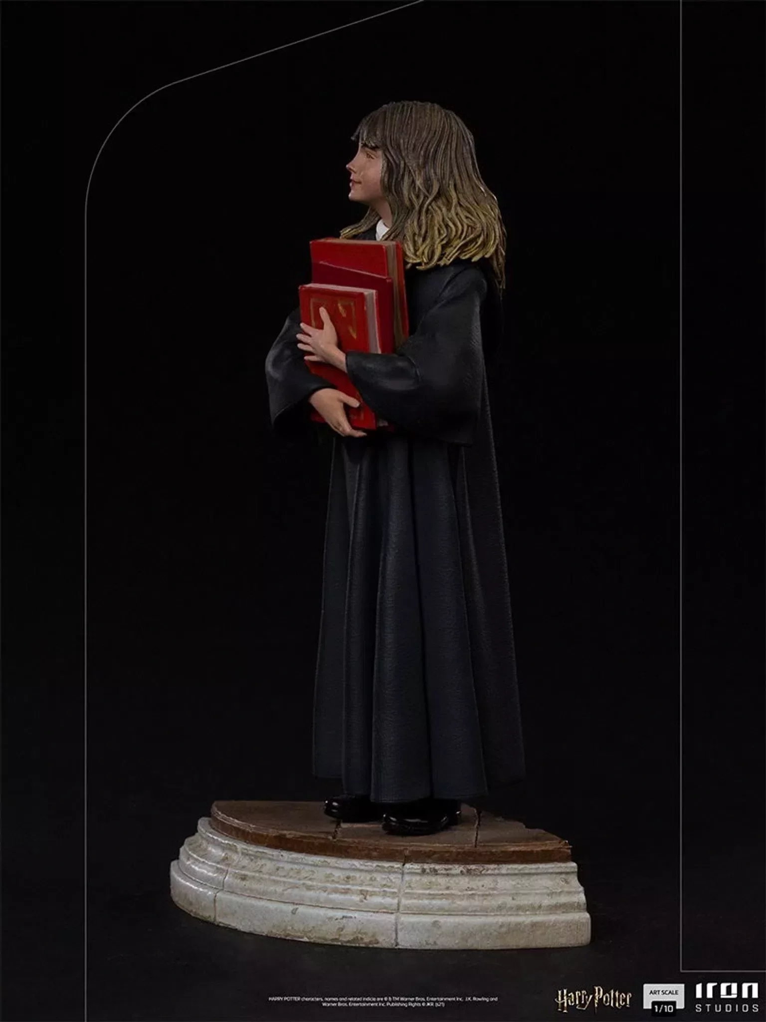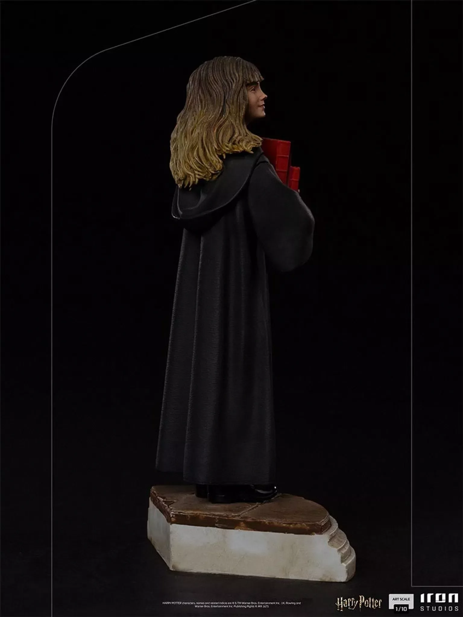 Hlavní hrdinka Hermione Granger z filmové série Harry Potter se představuje jako krásná soška od společnosti Iron Studios. Socha je vyrobena z kvalitních materiálů, je vymodelována podle podoby herečky Emmy Watson a ručně malována. Krásný dárek pro všechny fanoušky kouzelného světa Harryho Pottera. Soška je navíc součástí diorama které vzniklo k 20. výročí filmu Harry Potter a Kámen mudrců.