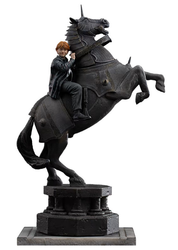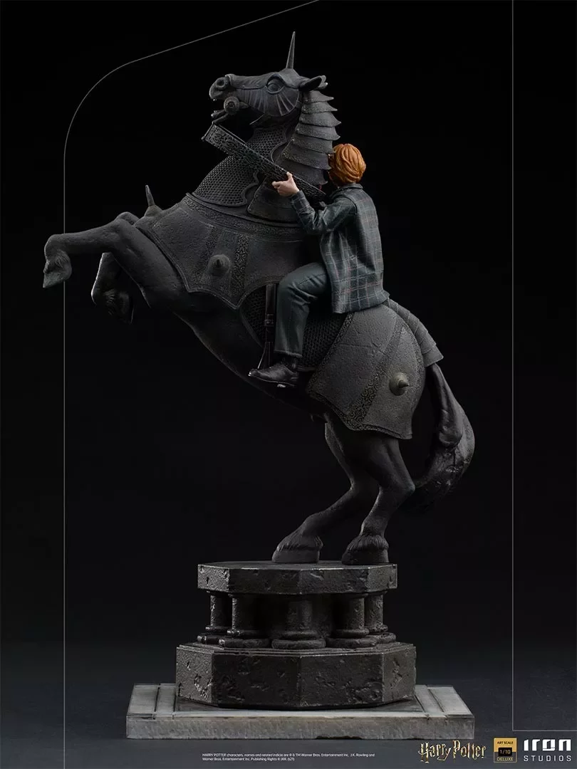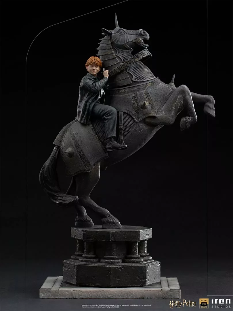 Krásná soška od společnosti Iron Studios představuje do nejmenších detailů replikovanou scénu z filmu Harry Potter a Kámen mudrců. Ron Weasley s tváří herce Ruperta Grinta sedí na koni při hře Kouzelnických šachů. Socha je vyrobená z kvalitního polystonu a ručně malovaná. Parádní přírůstek do každé magické Harry Potter sbírky!