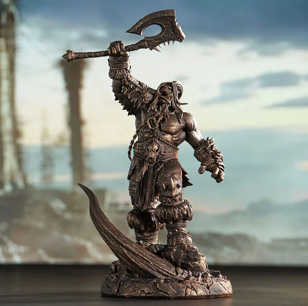 Prémiová socha Grommashe Hellscreama z World of Warcraft, vyrobená z polystone materiálu a laděná do bronzového odstínu, zdůrazňuje každý detail jeho postavy i brnění.