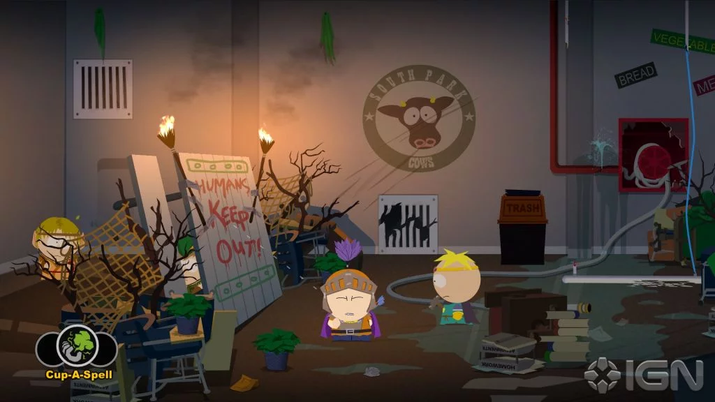Výsledkem je otevřený herní svět, kde najdete všechny charakteristické scény, včetně mnoha speciálních oblastí, kde se odehrají bláznivé bitvy. Samozřejmě, i za doprovodu Cartmanova ukvičeného hlasu. Vy se jako nová tvář postavíte po bok slavných charakterů, abyste odrazili vlnu agresivních gotiků a skřítků narkomanů.
