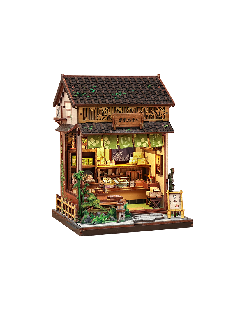 Uvnitř vás čekají pečlivě zpracované vitríny, regály s pochoutkami i drobné zahradní prvky před vstupem. Každý detail dává modelu život a dělá z něj ideální projekt pro milovníky miniatur, kteří si chtějí vychutnat tvoření a vystavit si doma kousek japonské elegance.
