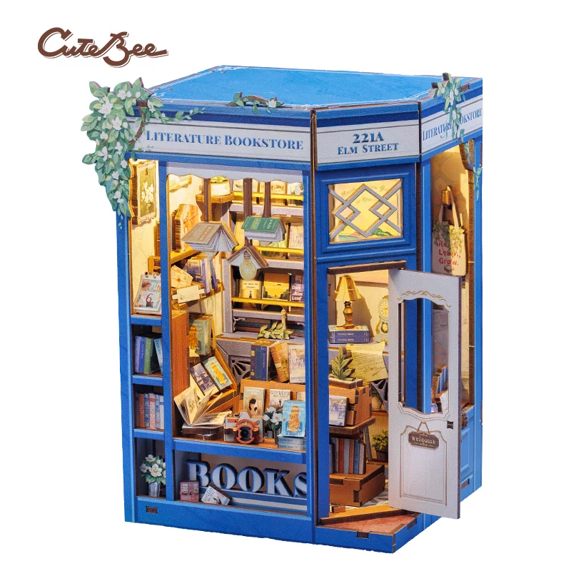 Vytvořte si vlastní útulné knihkupectví se stavebnicí CuteBee – Literature Bookstore. Elegantní modrá fasáda, otevřené dveře a výloha plná knih vás okamžitě vtáhnou do světa příběhů a klidných odpolední mezi policemi.