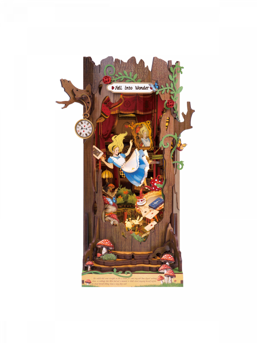 Ponořte se do světa plného fantazie a objevů. Tato kouzelná DIY zarážka Vás zavede přímo do králičí nory, kde na Vás čeká kreativita bez hranic a příběh ožívající v každém detailu. Každý dílek skládanky vytváří okouzlující scénu, která přitáhne pozornost v každé knihovně.