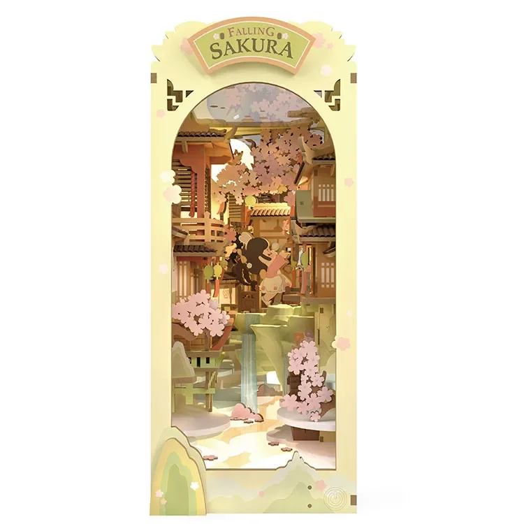 Zarážka Falling Sakura vnese na vaši poličku jemnou a klidnou atmosféru inspirovanou japonskými sakurami. Vrstvená dřevěná scéna vytváří efekt malého světa ukrytého mezi květy, kde se prolíná tradice, harmonie a poetika.