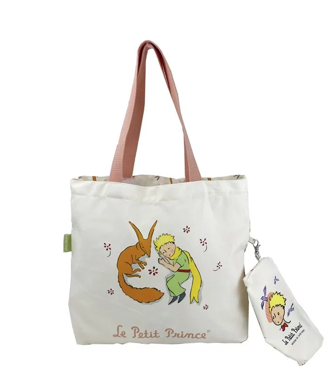 Lehká nákupní taška s peněženkou na mince zavěšenou na vnější straně, abyste měli peníze nebo klíče vždy po ruce. Peněženku i tašku zdobí motiv Malého prince.Rozměry: cca 42 x 2 x 35 cm