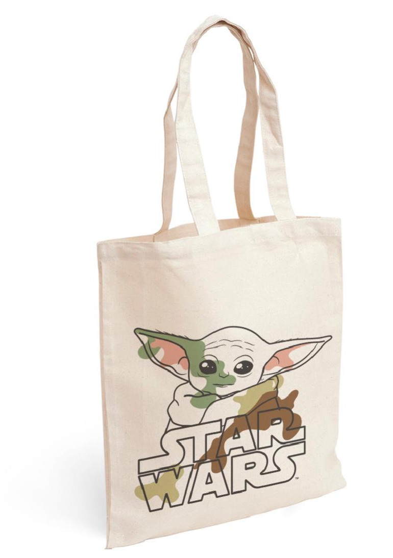 Krásná plátěná taška s The Child (známým jako Baby Yoda) z velice populárního seriálu The Mandalorian z univerza Star Wars (Hvězdné války) na nákup či pláž.