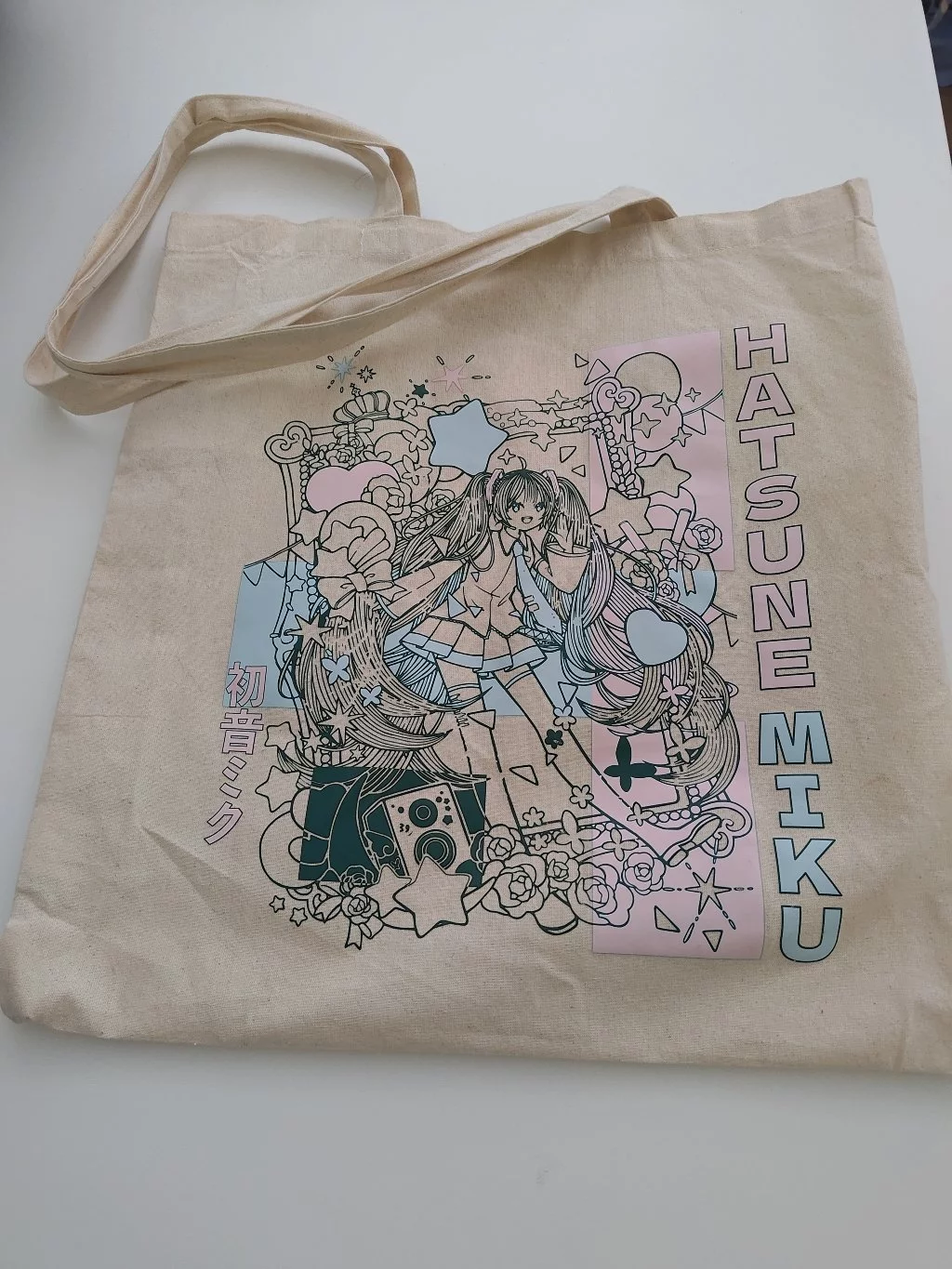 Stylová plátěná taška s motivem Hatsune Miku je must-have doplněk pro každého fanouška Vocaloidu. Lehká, praktická a dostatečně prostorná na všechny vaše každodenní nezbytnosti – ideální na nákupy, školu i cony.