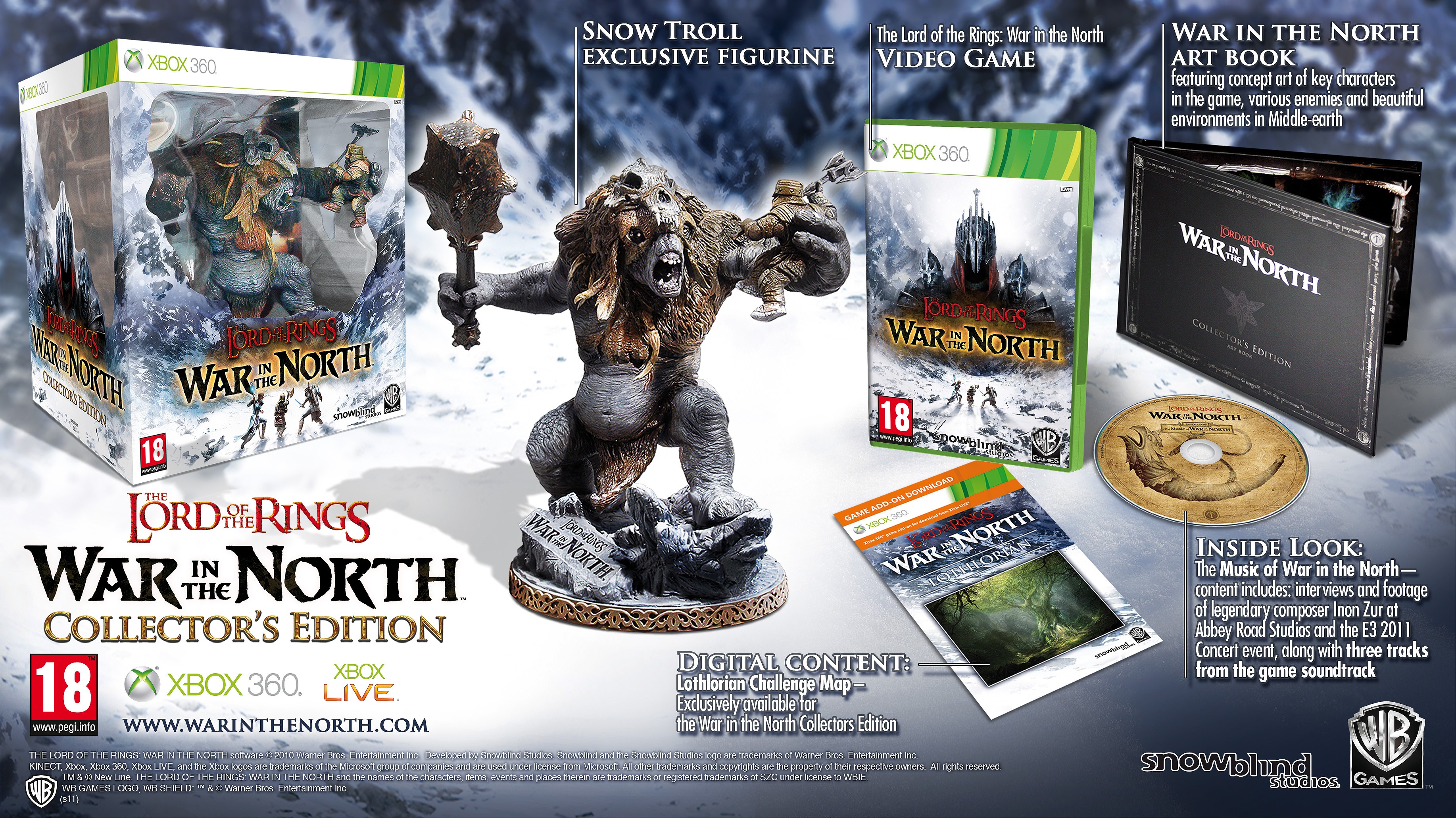 The Lord of the Ring je novým přírůstkem do universa Pána Prstenů a už nyní se ví, že stojí za to. Hra těží původní prvky Pána Prstenů, jehož vlastníkem práv je společnost Warner Bros. Hra bude založena na lineárním obsahu a filmovém zpracování Pána Prstenů. Navštívíte jak místa dobře známá z filmů, tak i místa která doposavad nebyla odhalena a teprve čekají na Vaši družinu. Ve hře spojíte síly v inovativní online RPG hře a v kooperativní hře až pro 3 hráče, jenž společně vytvoří slavné Společenství prstenu a společně bojují proti Sauronovi a jeho silám ovlivňující zemi ze severu středozemě.Sběratelská edice obsahuje steelbook, exkluzivní figurku sněžného trola, atrbook ( konceptů hlavních postav, nepřátel a krajiny Středozemě). DVD s bonusy, komentáři od tvůrců, skladatele Inona Zura a soundtrack. Obrázek celého balení zde.