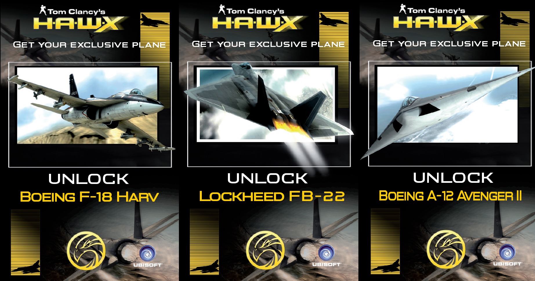 Získejte nejsilnější letouny. Chopte se pilotáže těch nejlepších strojů. Letouny Firehawku jsou vytvořeny s důrazem na realitu, přesnost a smysl pro detail. Hráči se proletí ve více než 60 letounech, které jsou vymodelovány podle reálných předloh. Létejte a bojujte s nejvyšší intenzitou. Provádějte extrémní manévry, které byly dříve k vidění pouze na akrobatických leteckých show. Pokořte nepřátele ve své Cobře nebo Kulbitu. Utkejte se s agresivní a realisticky reagující umělou inteligencí a naučte se využít jejích slabin. Moderní svět. Vítejte v novém zpracování leteckých bojů ve světě Toma Clancyho. Hra byla od základu tvořena pro konzole nové generace, a tak vám přinese neuvěřitelnou grafiku a efekty, díky níž si boj v konfliktu budoucnosti doopravdy užijete. H.A.W.X. bude sledovat vzestup soukromé žoldácké armády, jejíž existenci posvětila mezinárodní deregulace nákupu stíhaček. Do nově vzniklé militantní skupiny se rekrutuje i hl. hrdina neboli bývalý pilot americké armády - ostatně proč ne, když na pohled se přidává k slušným lidem, kteří se jen snaží pomoci zachovat světový mír. Jenže žoldáci se záhy začnou rozrůstat a brzy se svými silami vyrovnají předním světovým vojskům: a bude to právě druhá (a podstatně rychlejší/akčnější) část hry, která ukáže, jak zle mohou podobné příběhy dopadnout. -