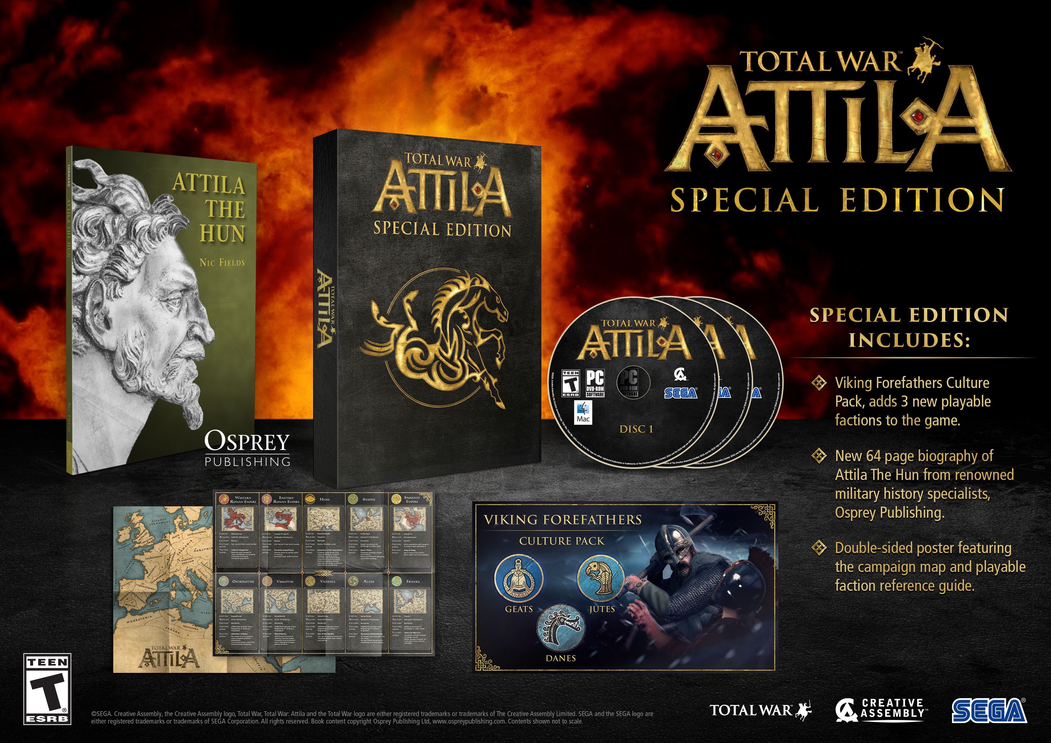 – Zlepšení a optimalizace grafiky kampaně i bojů vytvářejí mrazivou vizi tyčící se apokalypsy a trosek civilizovaného světa. Díky dech beroucímu měřítku, atmosféře a zlepšenému grafickému výkonu zažijete konec dní a vzestup legendy.Speciální edice obsahuje životopis Huna Attily jež napsal Nic Fields ENG, plakát a DLC Vikinští předkové! Celé balení zde