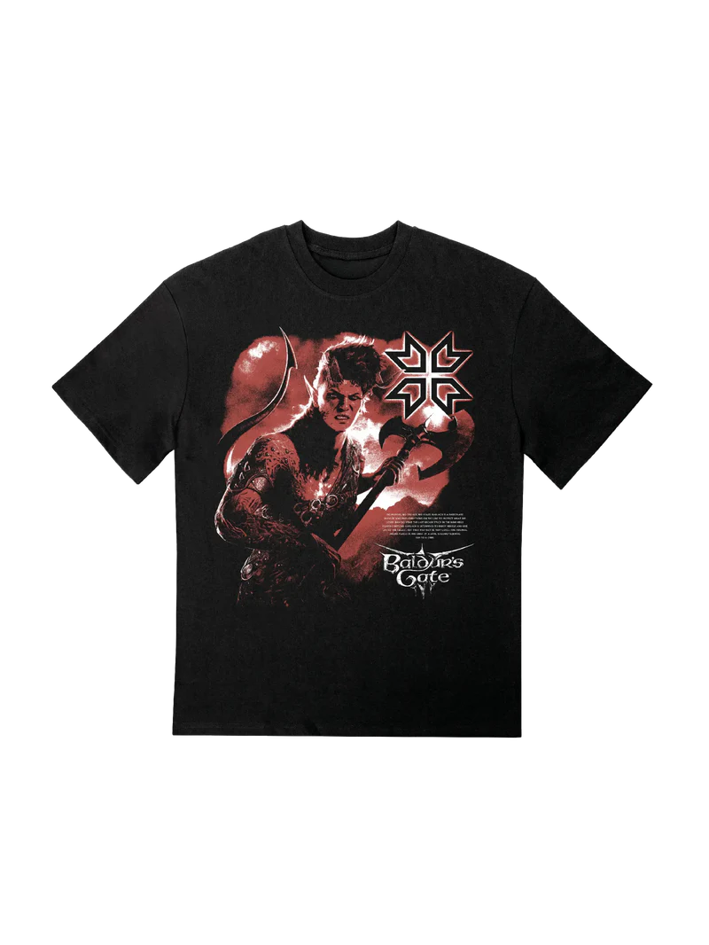 Oblečte se jako pravý dobrodruh s tričkem Baldur’s Gate 3 – Karlach, které na čelní straně zdobí ikonický portrét neohrožené válečnice v sytě červených tónech. Vyrobeno z kvalitní 100% bavlny s vysokou gramáží 310 g/m² a pohodlným střihem Oversized Fit. Oficiálně licencovaný produkt, ideální pro každého fanouška tohoto legendárního RPG.