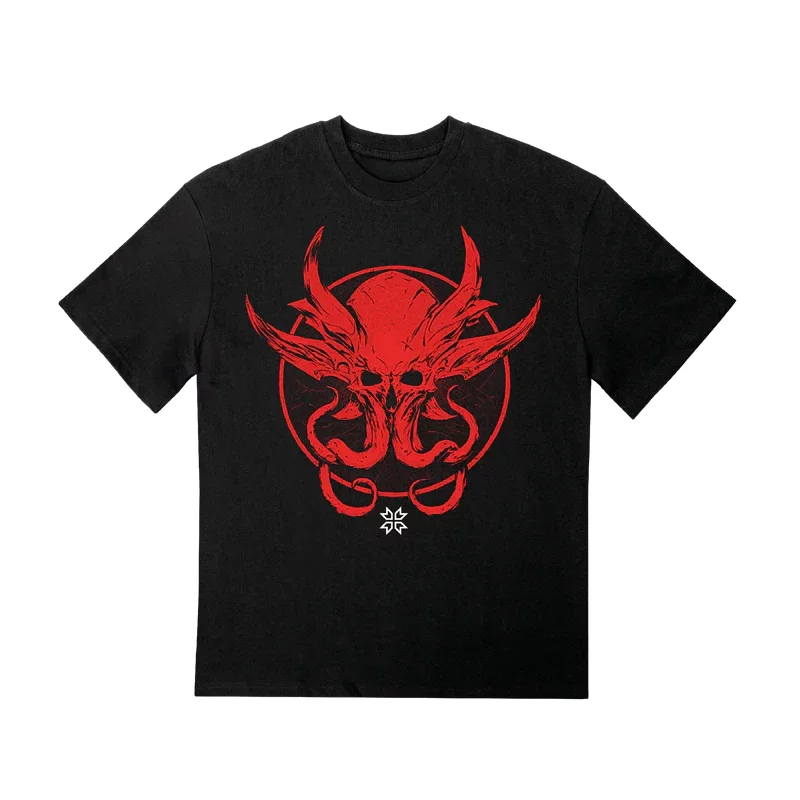 Stylové tričko Baldur’s Gate 3 v oversized střihu s výrazným červeným motivem mind flayera na přední straně a logem hry na zádech, vyrobené ze 100% bavlny s gramáží 310 g/m². Oficiálně licencovaný produkt.