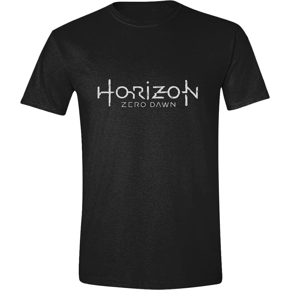 Černé stylové tričko s logem hry Horizon: Zero Dawn od studia Guerilla Games.