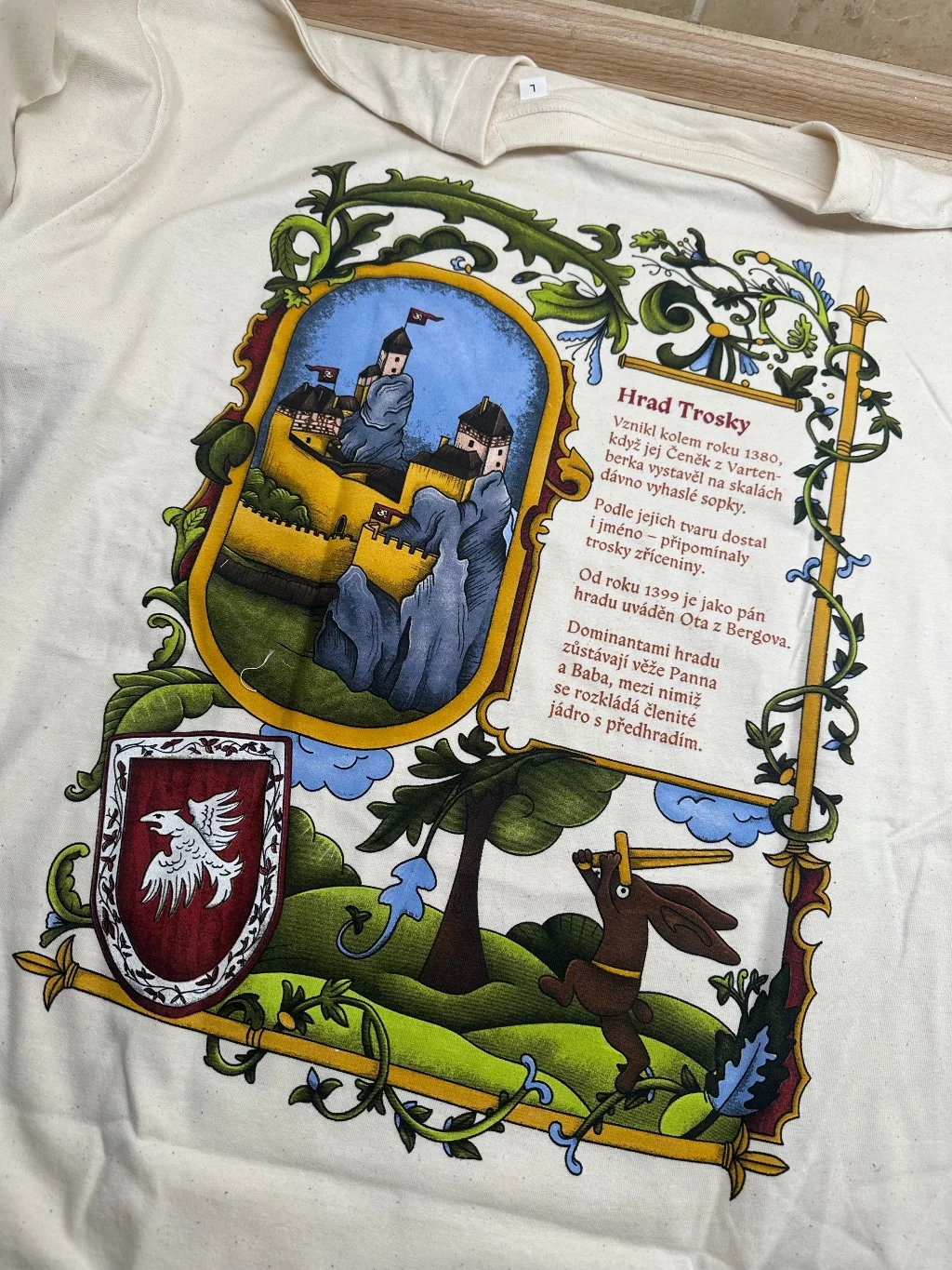• Přeneste se do srdce Českého ráje s tričkem inspirovaným legendárním hradem Trosky. Iluminovaný motiv připomínající středověké rukopisy zachycuje krásu i příběh této ikonické zříceniny, která ožívá ve světě Kingdom Come: Deliverance II.