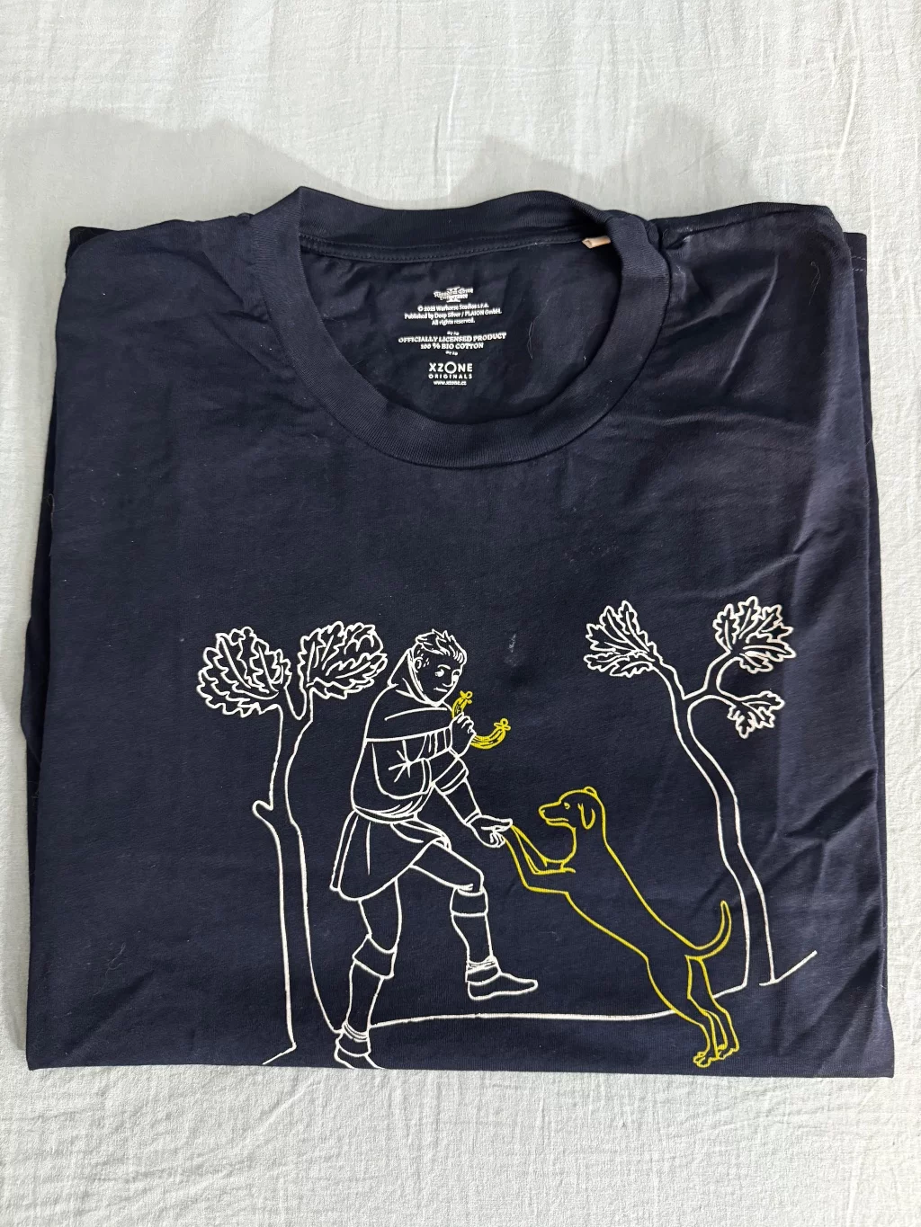 Takový šikovný pes jako Vořech si zaslouží dobrou uzenou klobásku! Jindra s jeho věrným psím parťákem ze středověkého RPG Kingdom Come: Deliverance II na kvalitním tričku z organické bavlny a trvanlivým sítotiskem. Na zádech pak najdete ikonické logo hry.