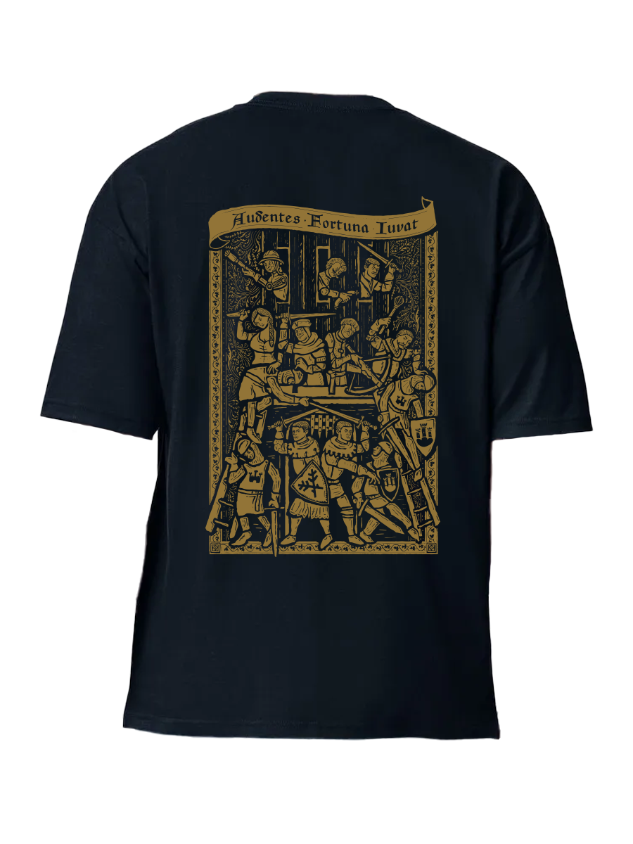 Suchdol patří k momentům, na které se ve Kingdom Come: Deliverance II prostě nezapomíná. Bitva, kde se láme situace, všude je chaos a vy jen doufáte, že to nějak dopadne. Právě tuhle atmosféru jsme přenesli na záda trička v podobě ilustrace inspirované středověkými rytinami, kde nechybí všichni nejoblíbenější hrdinové. Čím déle se na ni díváte, tím víc detailů objevíte.