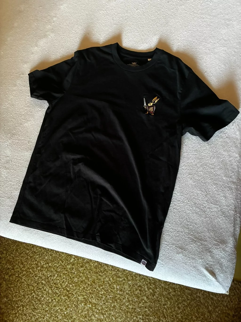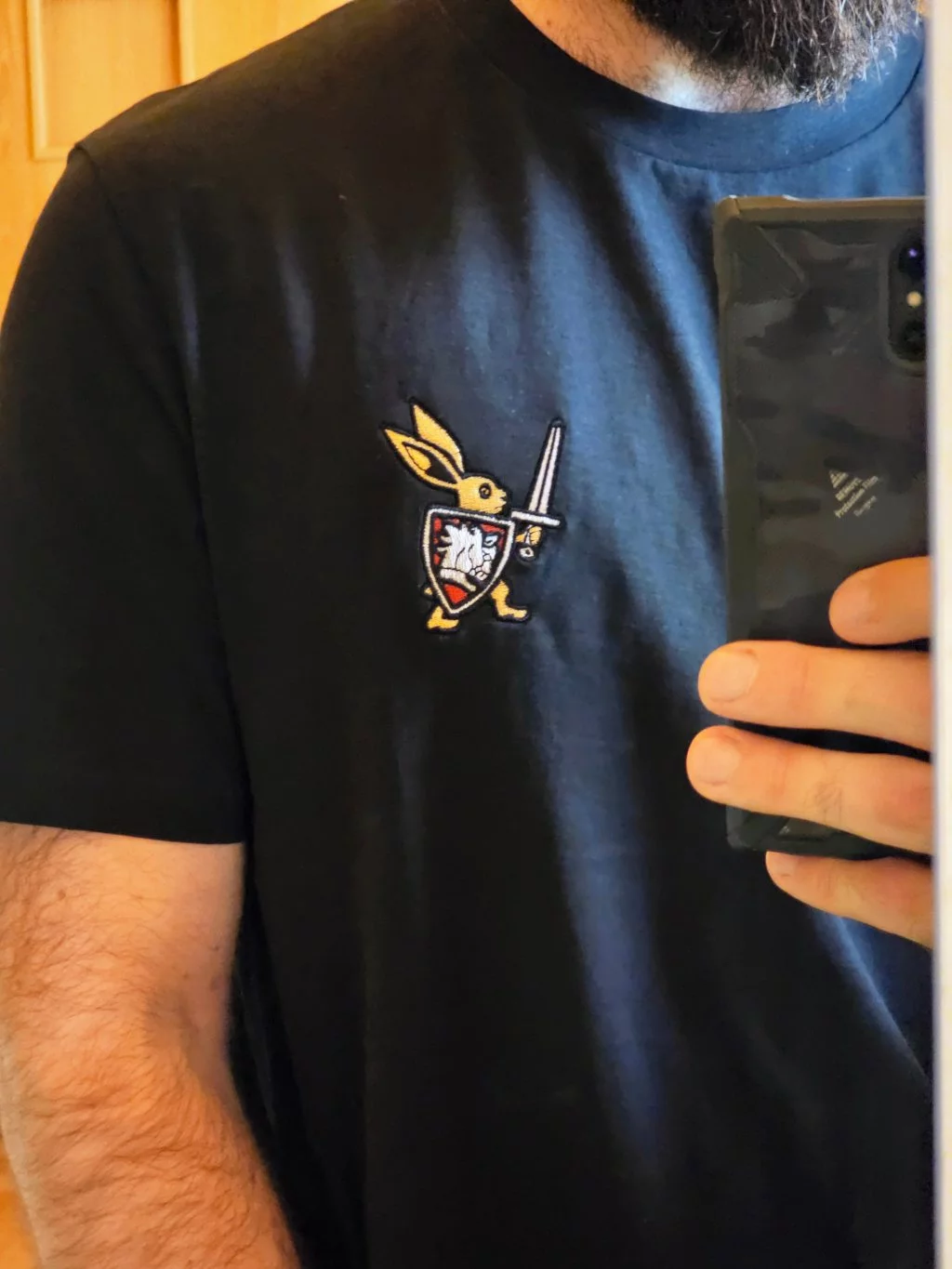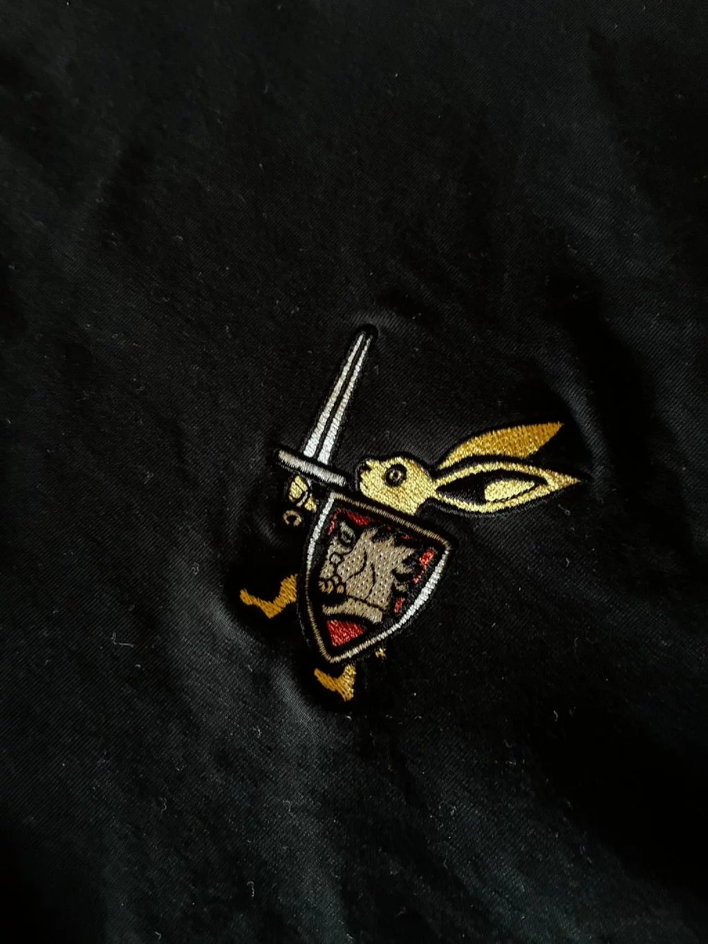 Odvážný zajíc vyráží do boje s erbem slavného rodu… tedy vlastně vývojářského týmu Warhorse Studios. Roztomilý, ale nebojácný zajíc je vyšit formou efektní výšivky, která vydrží i ten nejdrsnější šermířský souboj. Na zádech pak najdete plné logo Warhorse – autorů středověkého RPG z českých luhů a hájů, Kingdom Come: Deliverance II.