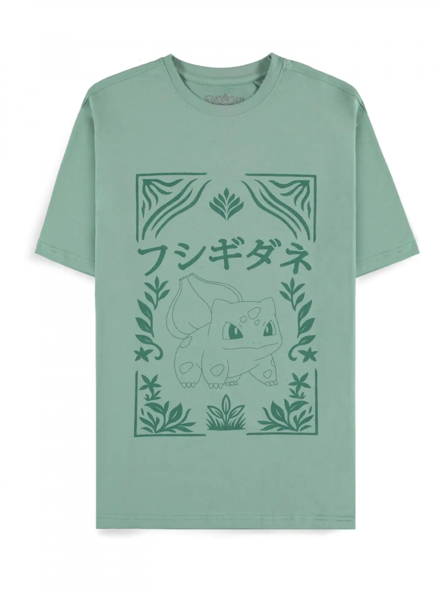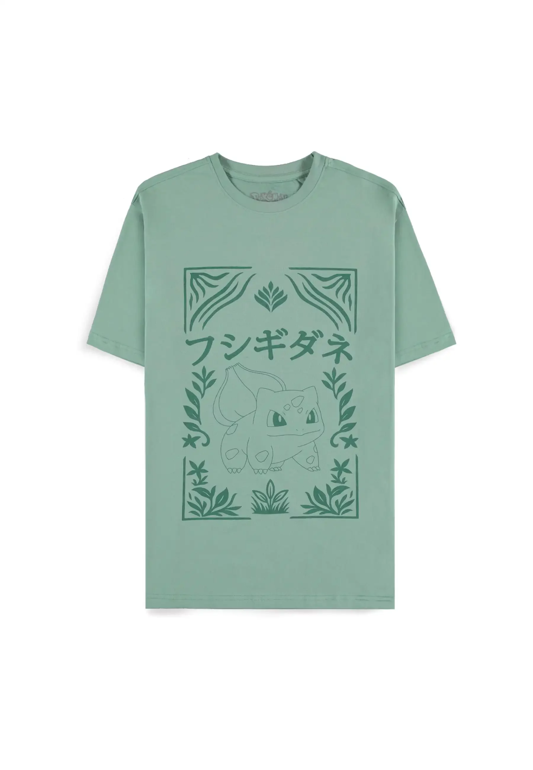 Minimalistický design s Bulbasaurem v přírodních tónech dává tomuto tričku čistý, klidný vzhled, ideální pro každodenní nošení i fanoušky první generace Pokémonů.