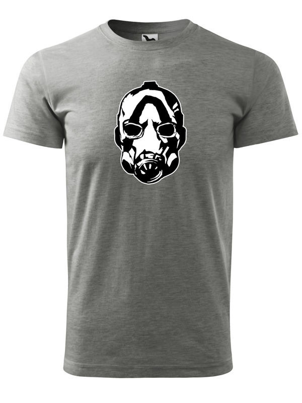 Krásné šedé tričko z kvalitního materiálu a potiskem Psycho Mask na hrudi i za krkem, pro fanoušky příběhů odehrávajících se například na planetě Pandora.